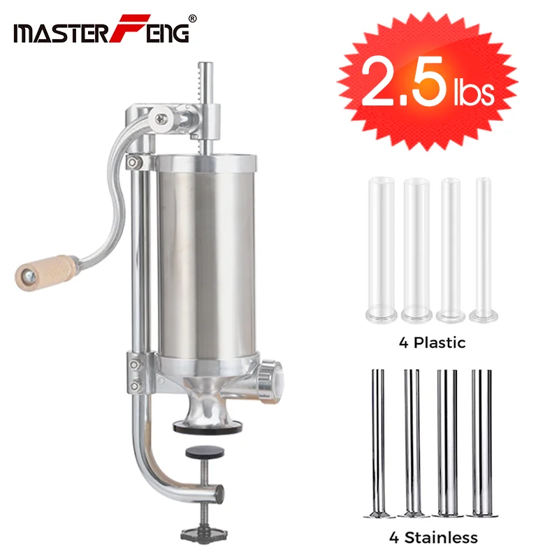 Ручной шприц для сосисок из нержавеющей стали, 2,5 фунта, наполнитель для сосисок, наполнение фаршем, приготовление салями