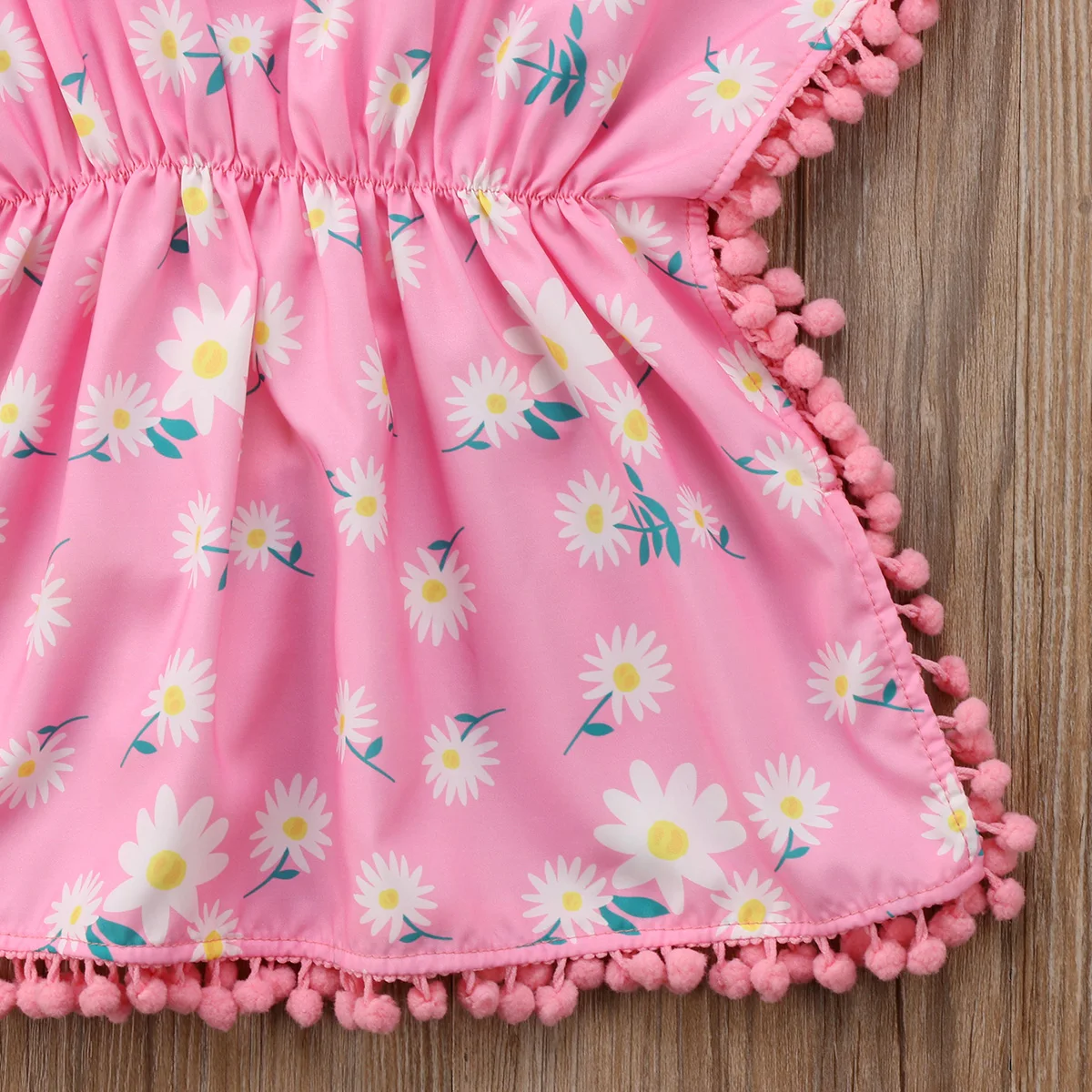 Сарафан Pudcoco, однотонный, с бахромой, без рукавов, с цветочным п...
