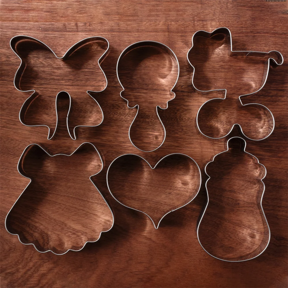 Набор для печенья KENIAO Baby Shower-6 шт.-бутылочка, погремушка, сердце, детская коляска, платье, Бисквит-нержавеющая сталь