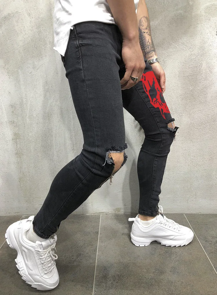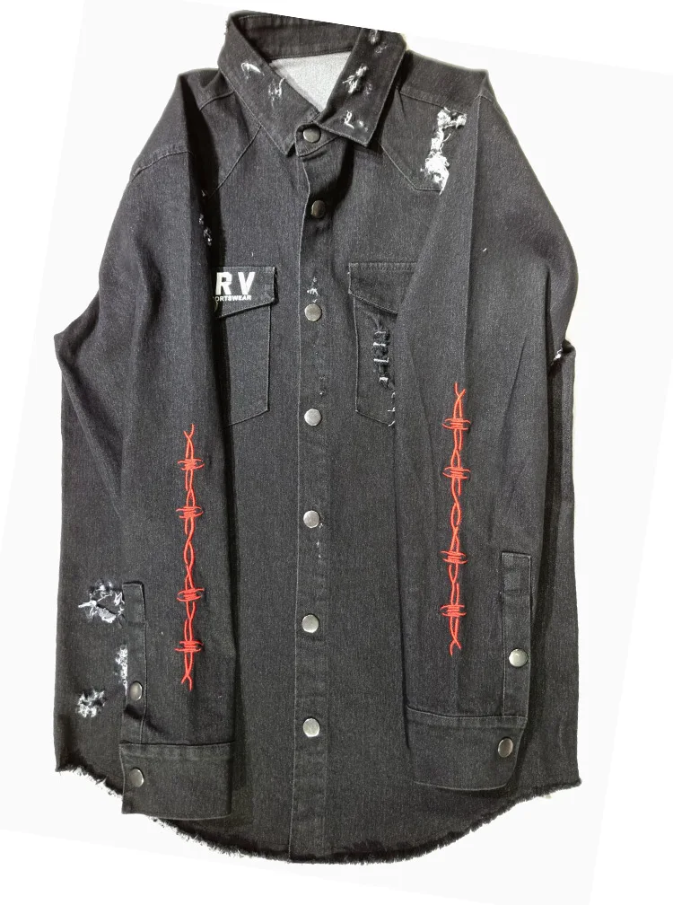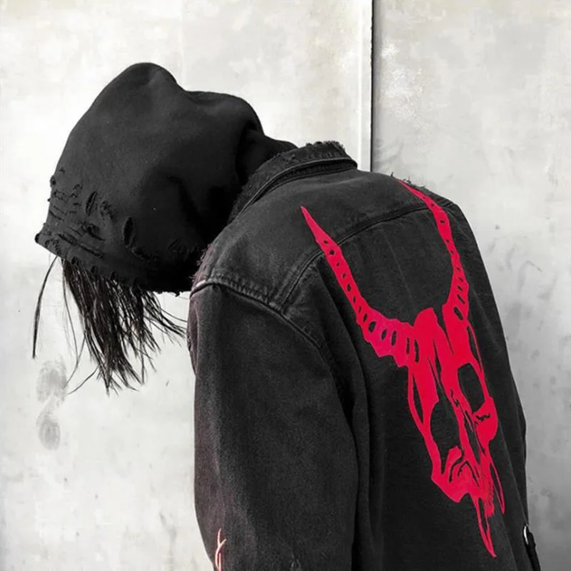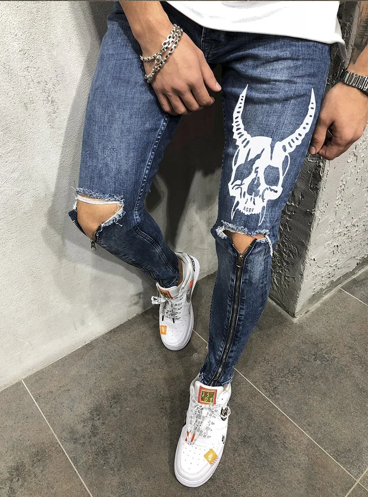 Джинсовая куртка мужская с принтом, винтажный Пиджак из денима с полыми отверстиями, модная уличная одежда в стиле хип-хоп, весна-осень 2019
