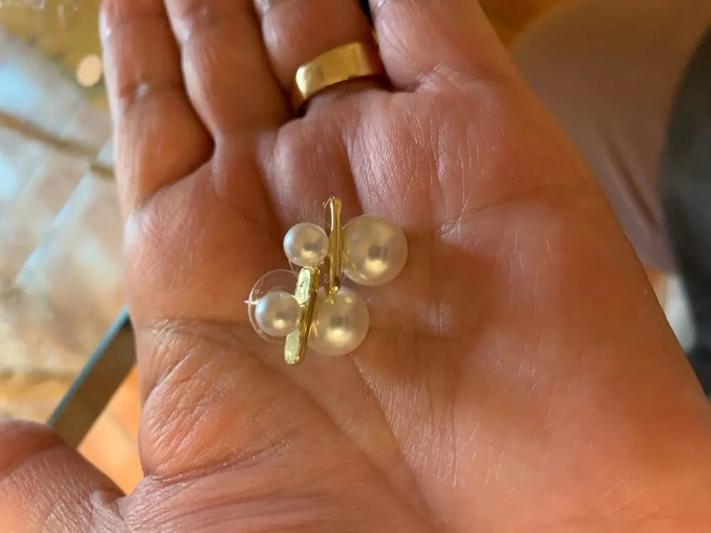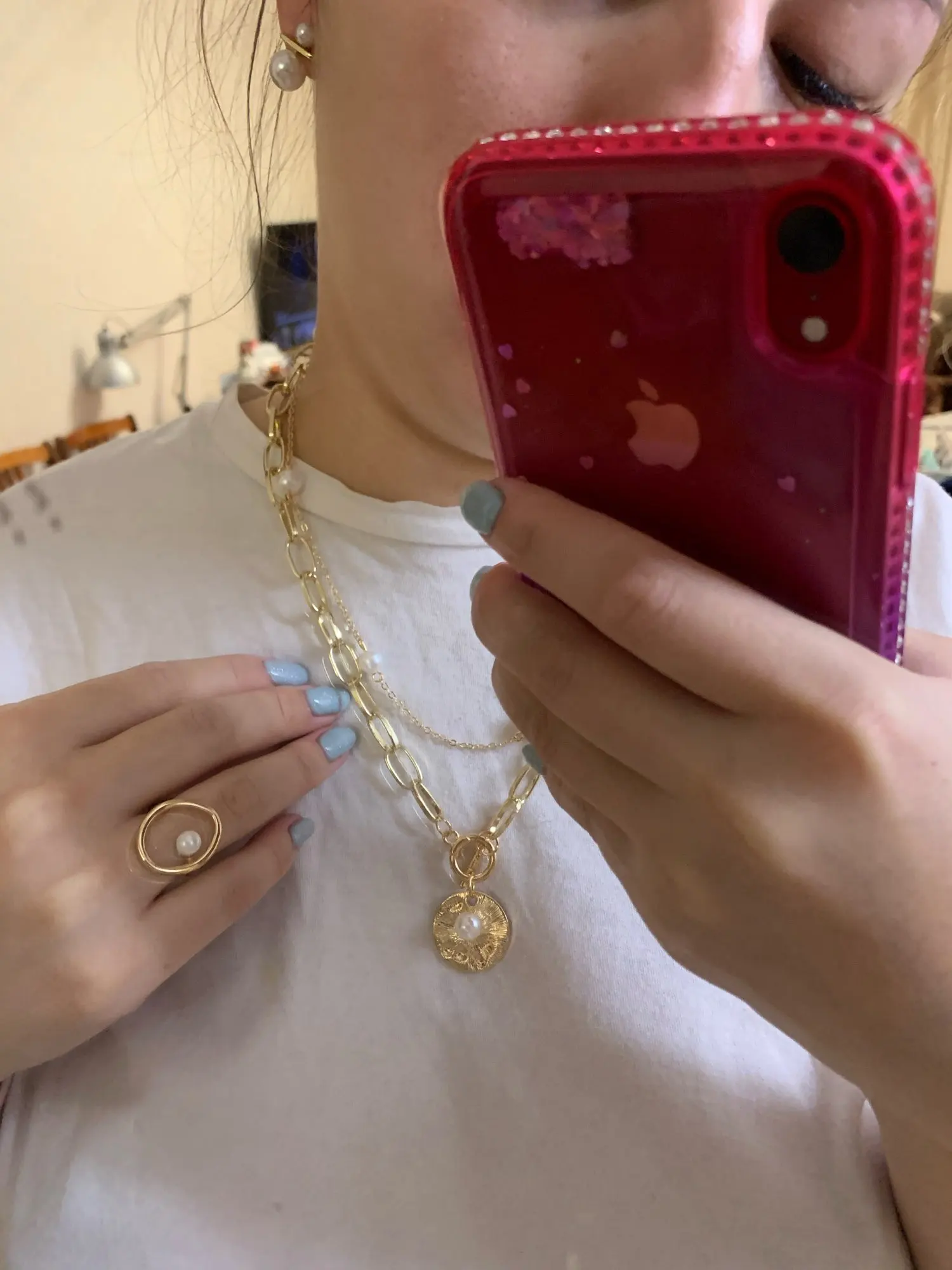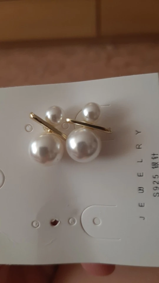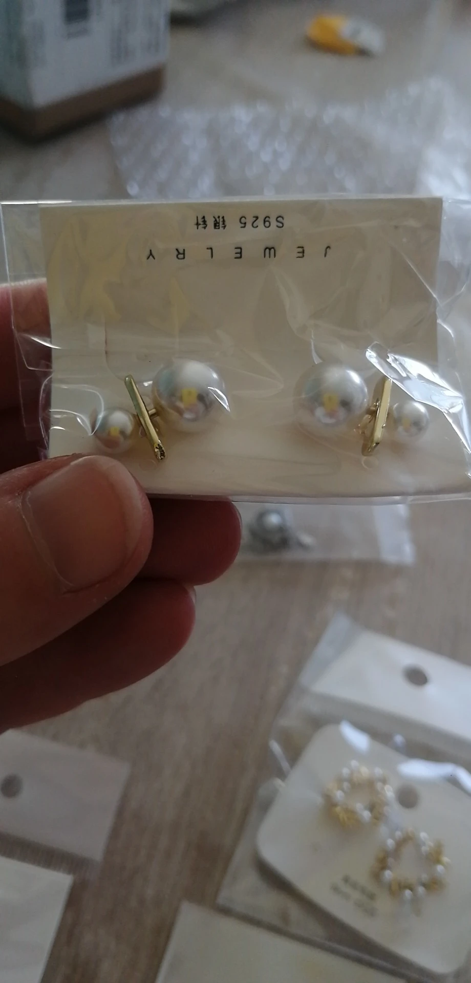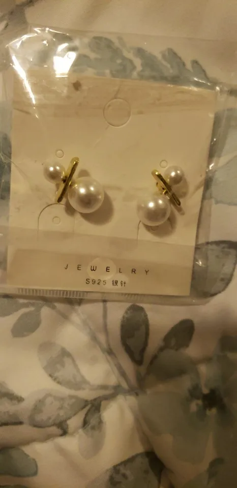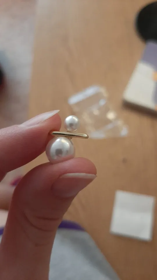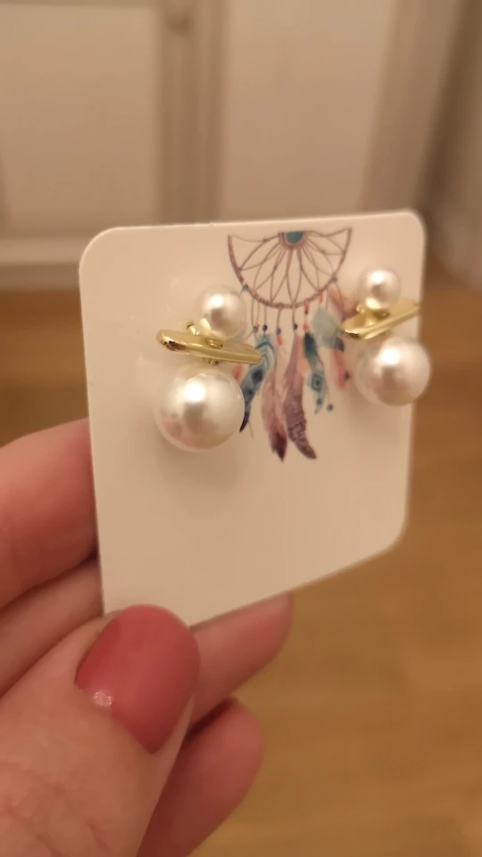 Сережки с жемчужиной - очень тонкая швенза, буквально проволочка, гнется. Кольцо супер, очень понравилось, также как и висячие серьги - претензий нет. Качество очень хорошее для бижутерии.