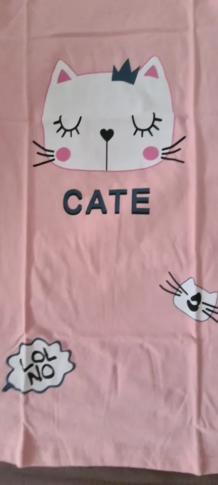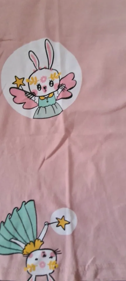 хороший плотный хлопок. после стирки не села. при глажке рисунок не липнет к утюгу. но немного маломерит - так как у меня девушка тонкая, просто оказалось коротковато. но плотным деткам надо брать на размер побольше. с продавцом не общалась)