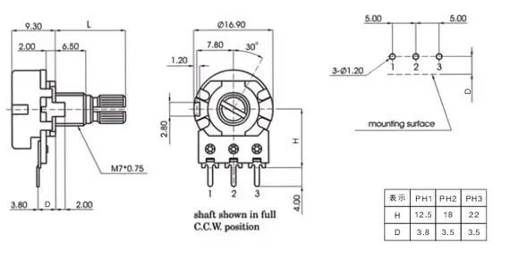 Линейный потенциометр WH148, вал 15 мм с гайками и шайбами, 3-контактный, WH148, B1K, B2K, B5K, B10K, B20K, B50K, B100K, B500K, B1M, 5 шт.