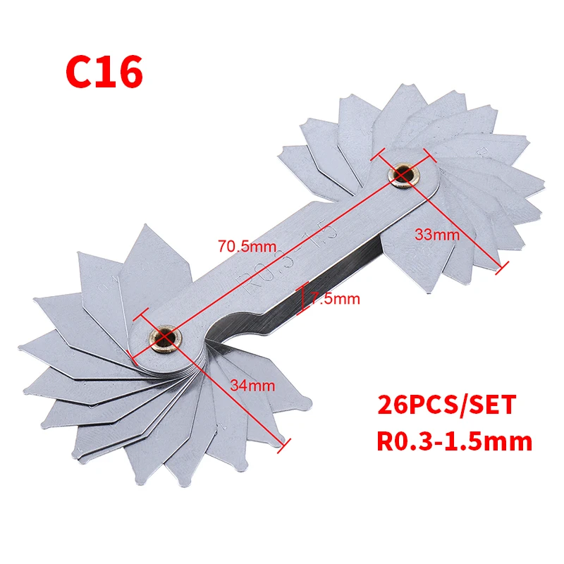 Измеритель радиуса, из нержавеющей стали, 32 шт.компл., для промышленных измерений
