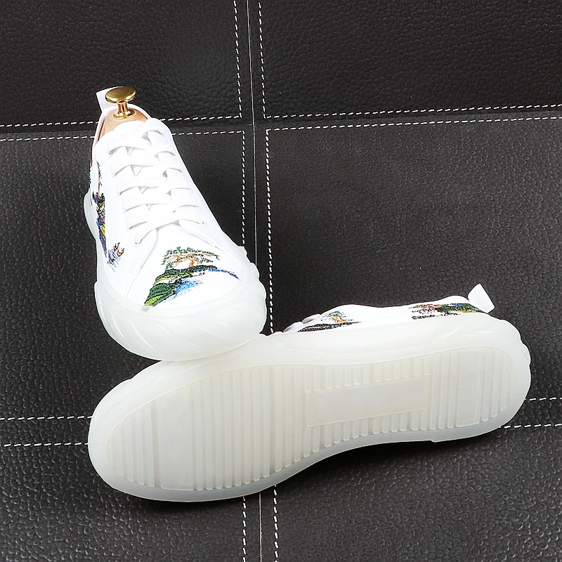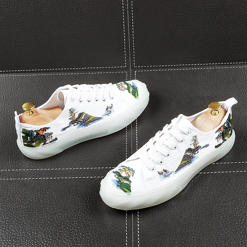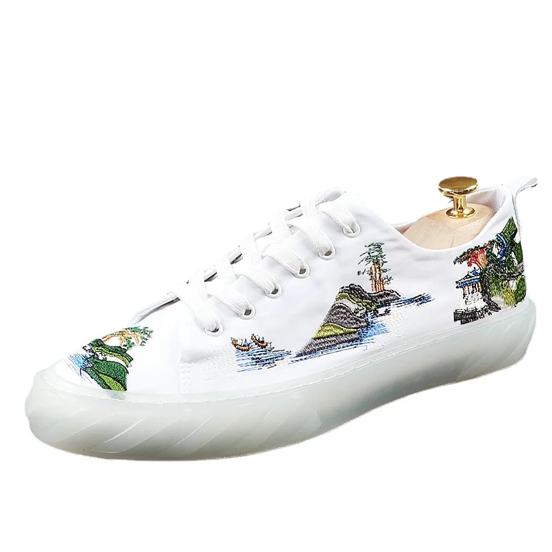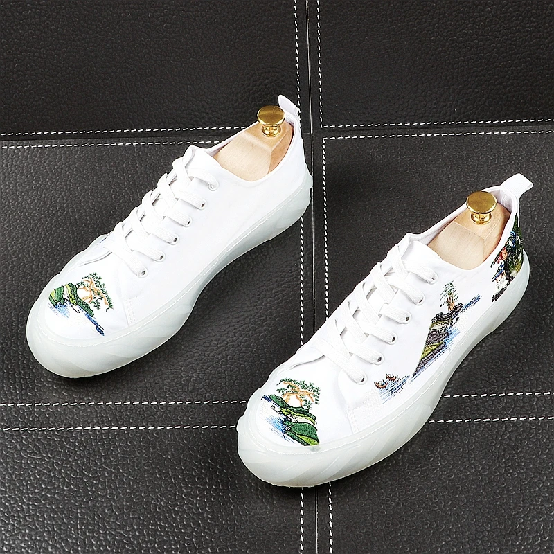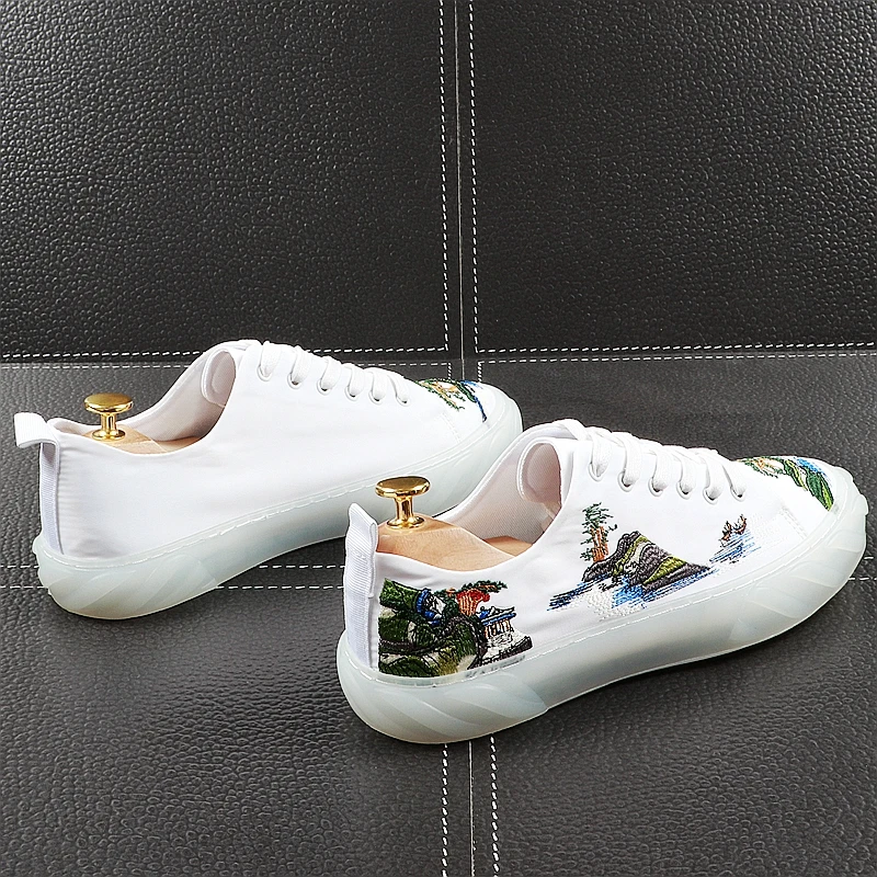 CuddlyIIPandaМужская модная повседневная обувь; Летние кожаные кроссовки с вышивкой в китайском стиле; Мужская дышащая Молодежная трендовая обувь