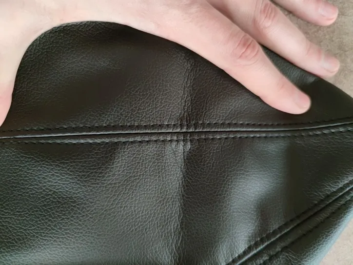 Пришёл через три недели в М.О. Материал - дерьмонтин, что и было указано в описании. Сшито качественно, швы ровные. Пока не устанавливал.
