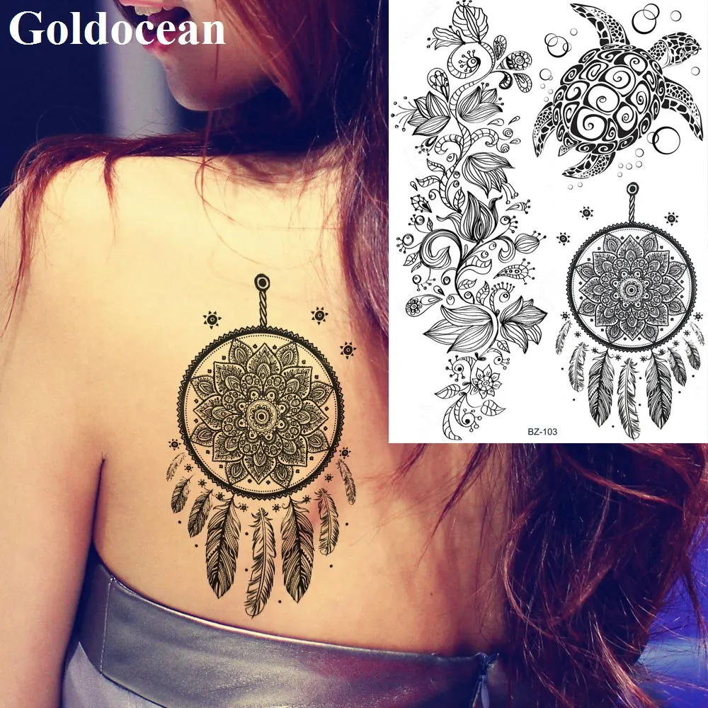Татуировки GoldOcean, с изображением мандалы, цветов, Ловец снов, черепахи, ротанга, наклейки для шеи, женские татуировки, временные татуировки для тела, рук, груди