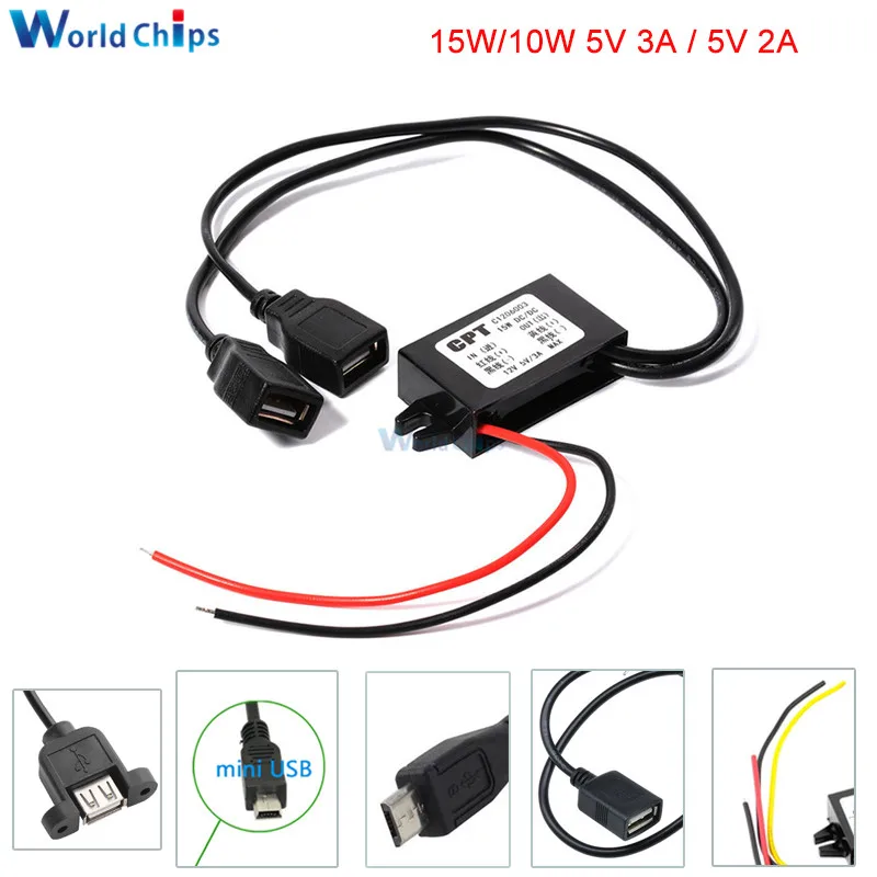 Понижающий преобразователь с 12 В на 5 В, 2 А, 3 А, 10 Вт, 15 Вт, DC-DC, модуль питания, мини-USB, адаптер Micro USB для автомобиля, мужской, женский, USB