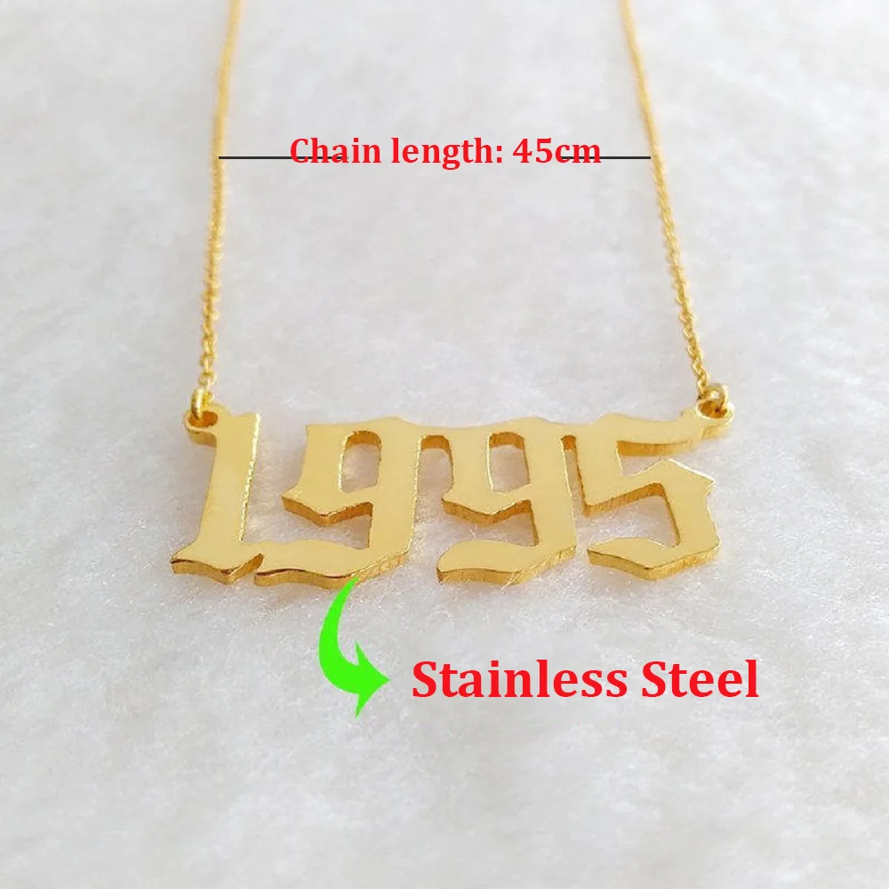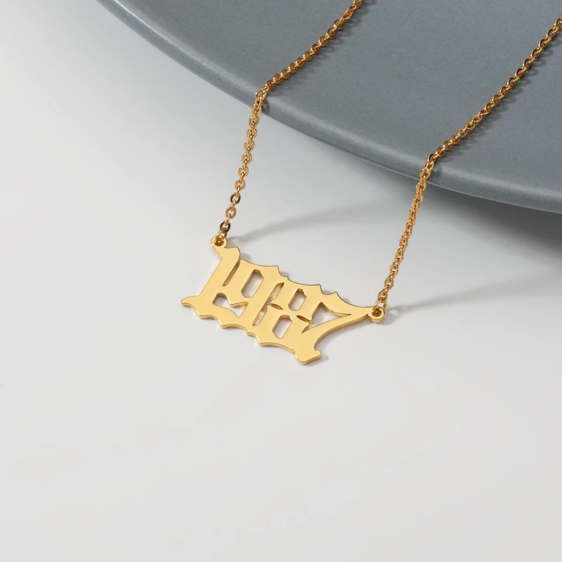 Ожерелье из нержавеющей стали с английским номером, Золотая цепочка, ожерелья и подвески, год рождения, с 1985 по 2019, ювелирные аксессуары