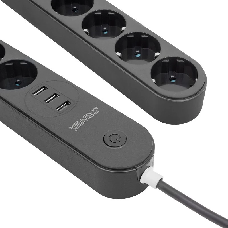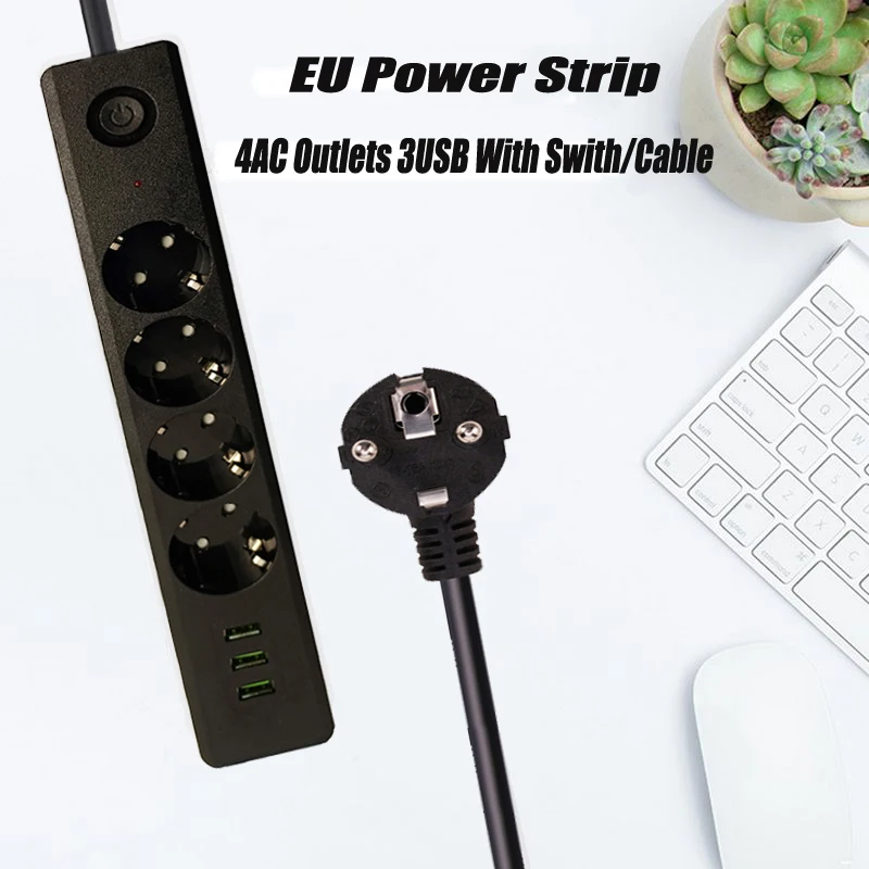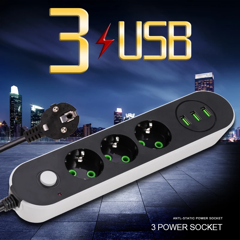 Удлинитель для кабеля, 2 круглых контакта, штепсельная вилка европейского стандарта, 3 выхода, 3 порта USB, 5 м, 2 м, 1,4 м, сетевой фильтр