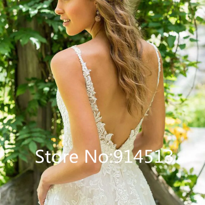 Свадебное платье-трапеция с V-образным вырезом, кружевной топ с аппликацией, свадебное платье на заказ со шлейфом, 2021