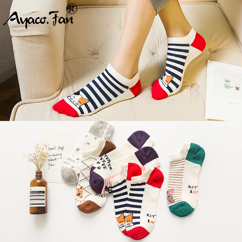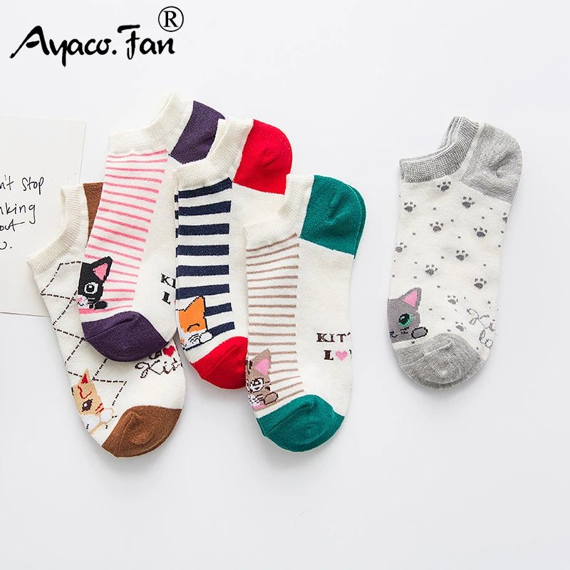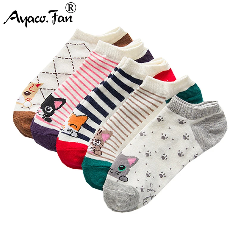 5 партлот женские короткие носки новые женские низкие носки летние весенние новые простые хлопковые носки для девочек носки с милыми животными кошками