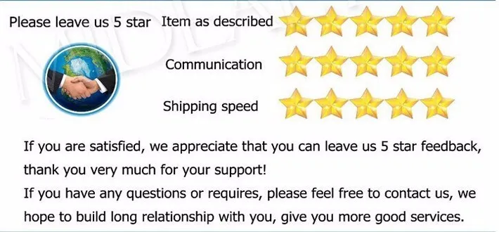 Когда вы получите товар, пожалуйста, дайте нам свои отзывы, чтобы мы могли сделать некоторые улучшения и обеспечить лучшее обслуживание. Ваши отзывы будут очень насыщенными.