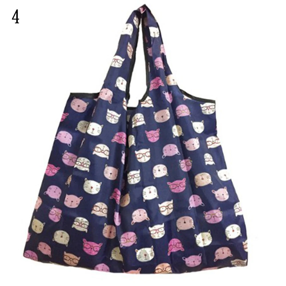 Женские складные многоразовые хозяйственные сумки из переработанного материала, портативная мультяшная Сумка-тоут для фруктов и овощей с цветочным принтом, экологичные продуктовые сумки