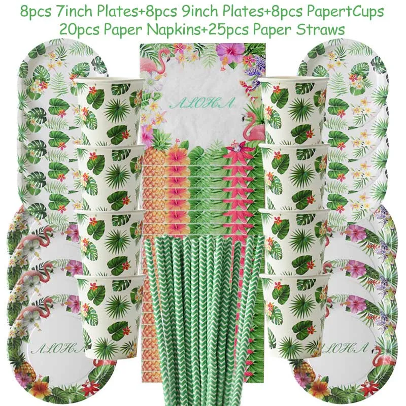 Гавайские вечерние Фламинго тропические воздушные шары посуда украш...