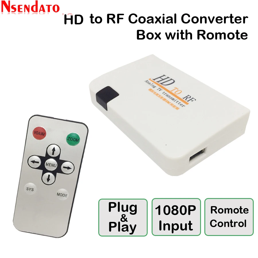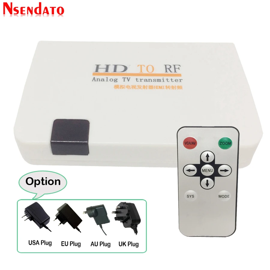 HD к RF коаксиальный модулятор конвертер аналоговый сигнал ТВ передатчик коробка с дистанционным управлением зум Поддержка HD ТВ монитор проектор