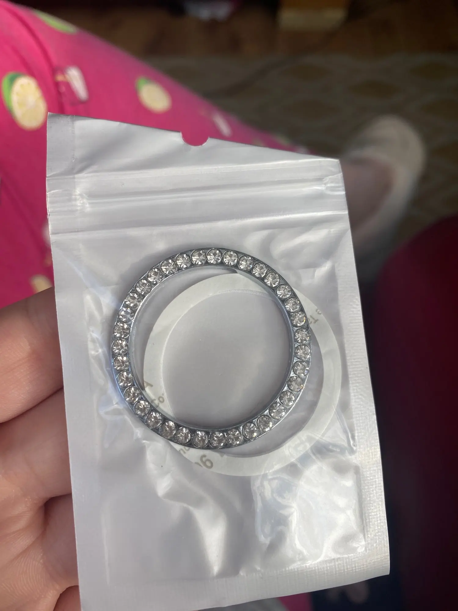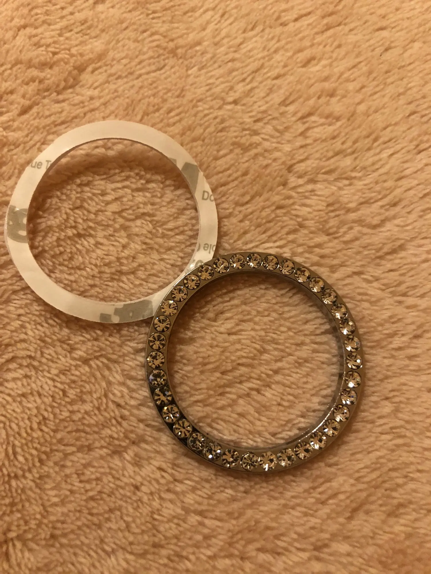 Очень блестящий, мне нравится. Но он не подходит для моей машины. Так что вы знаете-это не мягкая наклейка, это как кольцо из нержавеющей стали. И они дают вам двустороннюю ленту, чтобы надеть кольцо.