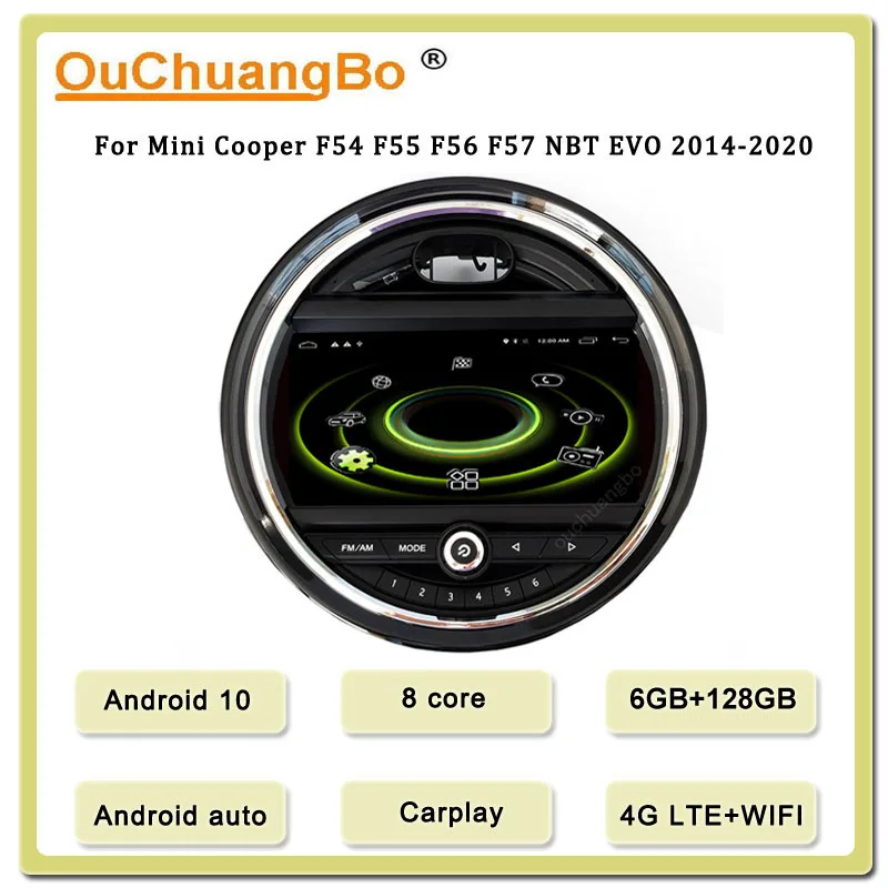 Аудио-, GPS-радио Ouchuangbo, 4G, Android 10, для Mini Cooper F54, F55, F56, F57, NBT EVO 2014-2020, DSP, 8 ядер, 128 ГБ, головное устройство