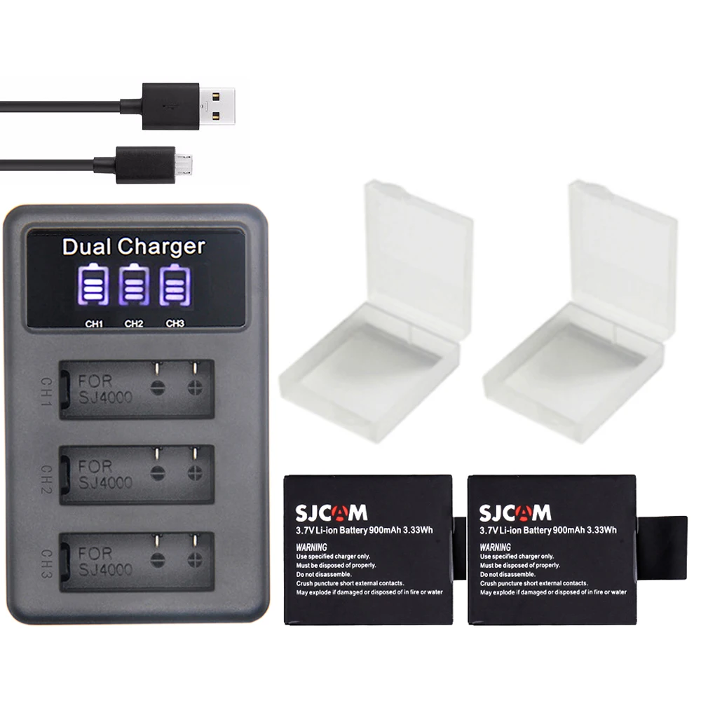 Литиевая батарея SJCAM для камеры 3,7 в 900 мАч + зарядное устройство с ЖК-экраном 3 партииДля SJ4000/SJ5000/SJ6000 7000 8000 9000 M10 EKEN H9 H8 Explorer Экшн-камера видеокамера/DV/DVR