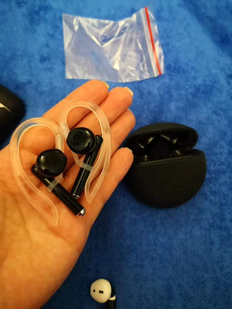 Удобное крепление, сидит в ухе прочнее, можно бегать. Их положили вместе с другими моими заказами в один пакет и трек отслеживался и посылка очень быстро дошла, хотя товар дешёвый и обычно ждешь месяцами. Продавцу спасибо.