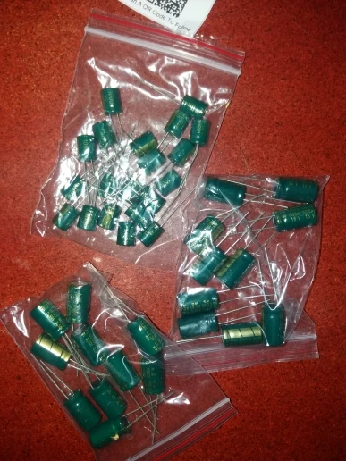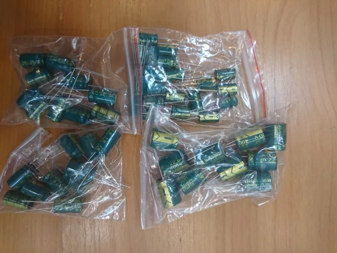 Доставка долгая, два месяца. Положили в почтовый ящик. В упаковке с запасом. В одном пакетике 63 штуки. ESR 0,51 Ом у 47x35v, ёмкость показало 48мкФ. У 22x50v ESR 0,92 Ом, ёмкость 21-22 мкФ. Проверял несколько штук выборочно.