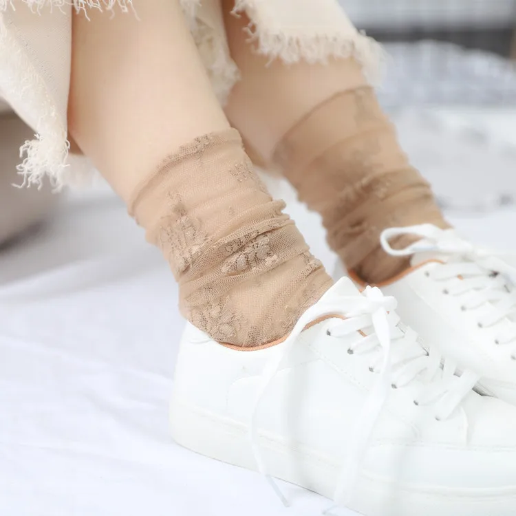 Носки женские кружевные эластичные, 1 пара = 2 шт., SLU07
