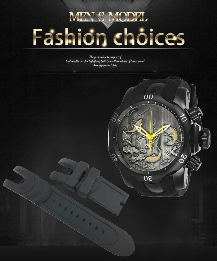 Ремешок силиконовый для наручных часов 26 мм, резиновый водонепроницаемый черный браслет, особый популярный в коллекционном стиле Invicta Park