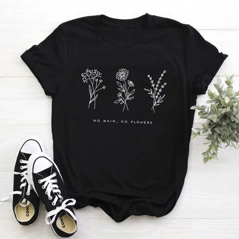 Летняя футболка без дождя и цветов, модная повседневная женская желтая одежда, футболка с коротким рукавом и пчелами, со слоганом без дождя, гранж-топы