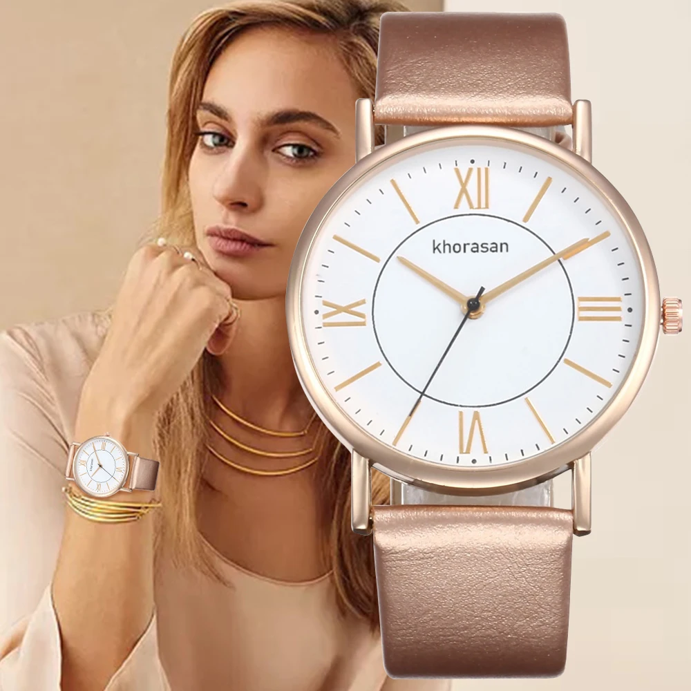 Часы женские кварцевые с кожаным ремешком, на каждый день
