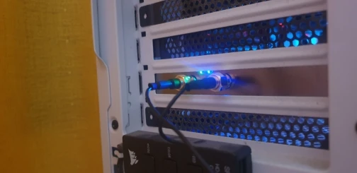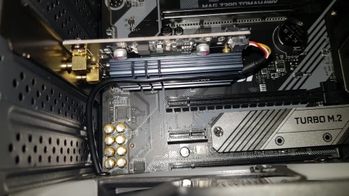 шло с месяц, увидев диск в коробке посмеялся провод для блютуса длинноват, пришлось пропускать в отсек для БП, но это частности взял тот, что с радиатором, встал в самый нижний писиай слот и тогда подумал, что можно было спокойно брать прикрытый жестянкой, но это уже личное дело каждого блютус проверил через приложение "мой телефон" в винде, прием телефонных звонков на компе с микрофона вебки и колонок, но у каждого свой сценарий использования вайфай работает лучше, чем с роутера, возможно дело в антеннах