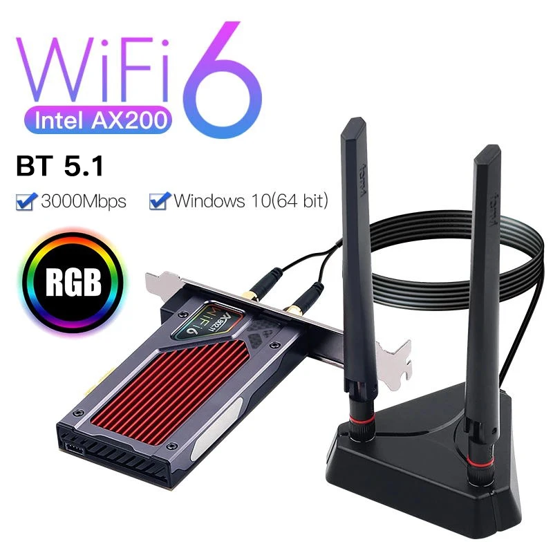 Беспроводной двухдиапазонный адаптер PCIe 3000 Мбитс Intel AX200 Wi-Fi 6 Bluetooth 5,1 сетевая Wi-Fi-карта 802.11acax 2,4G 5G RGB Настольный ПК