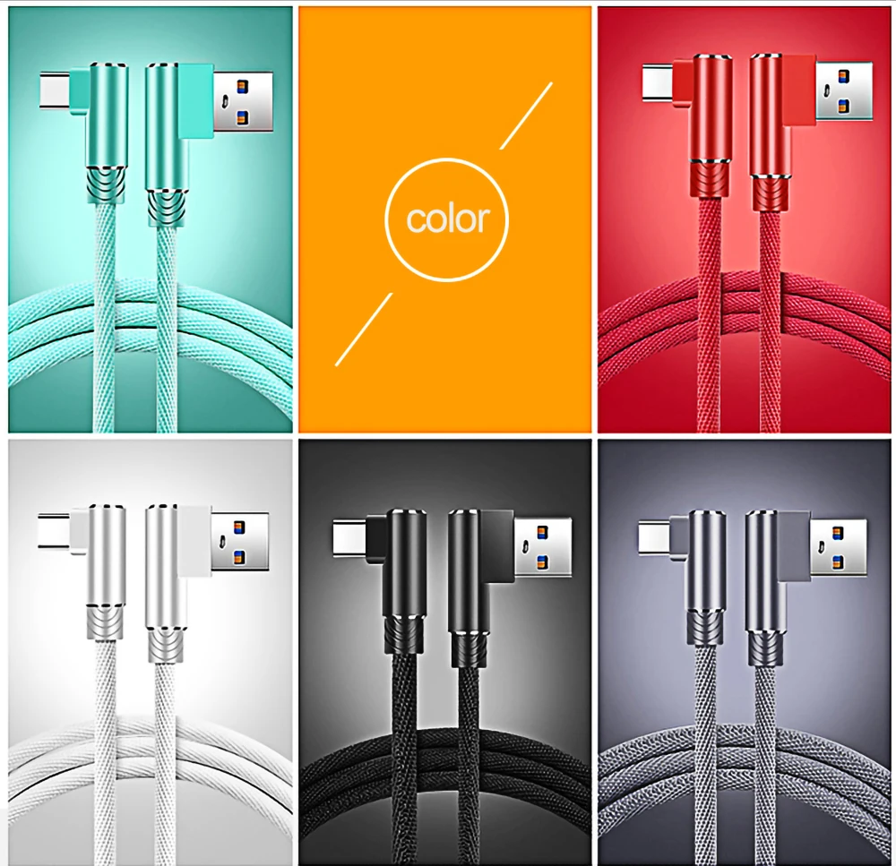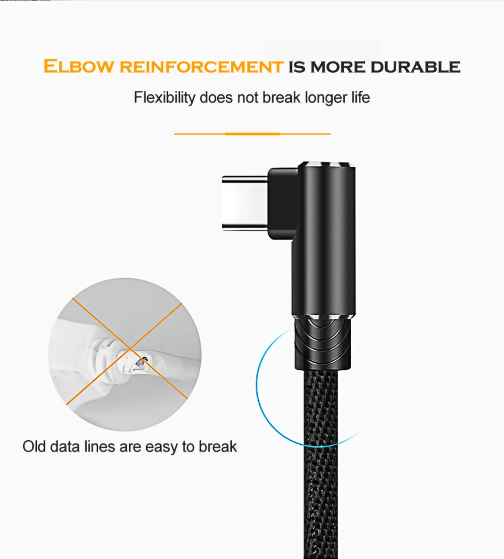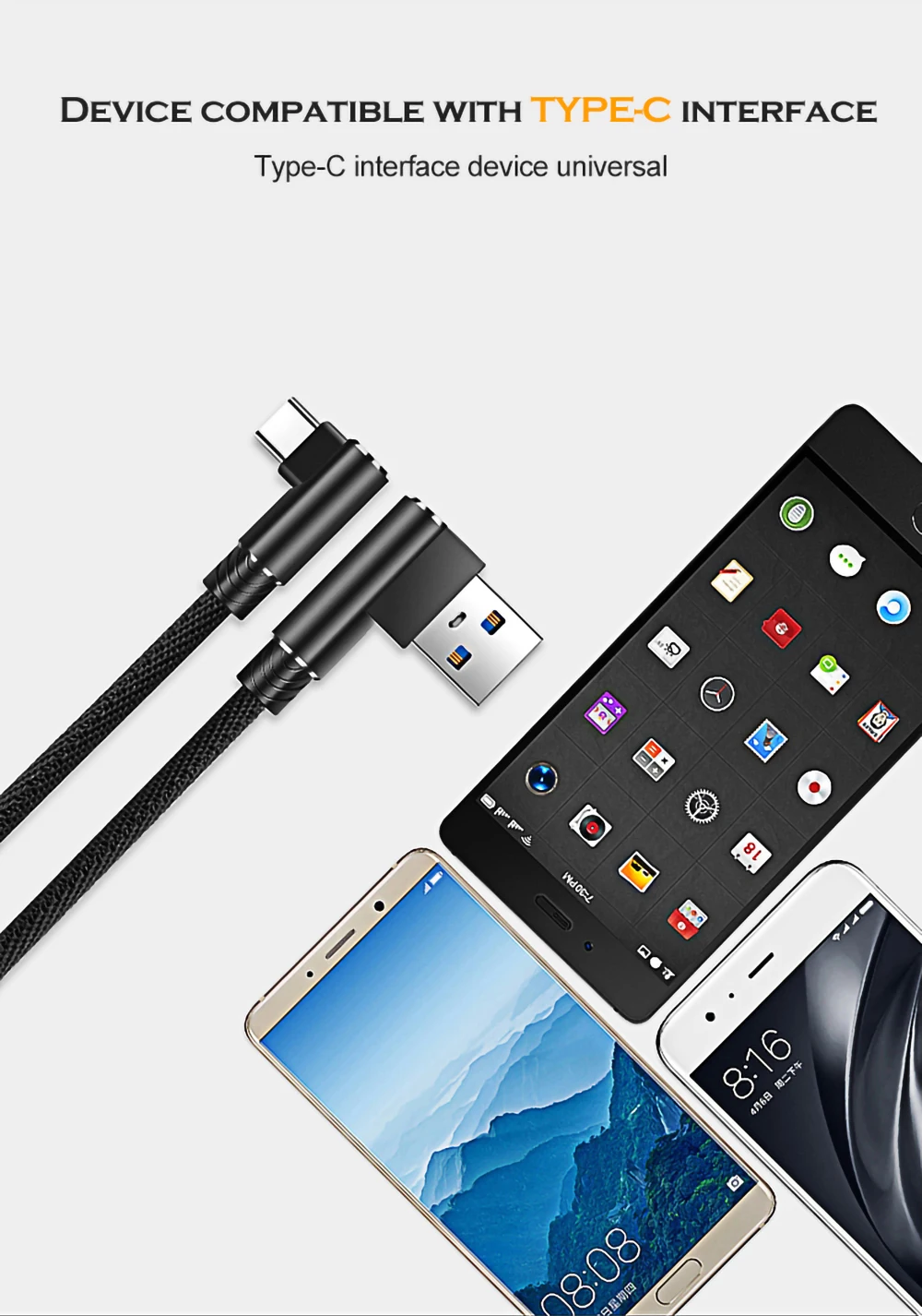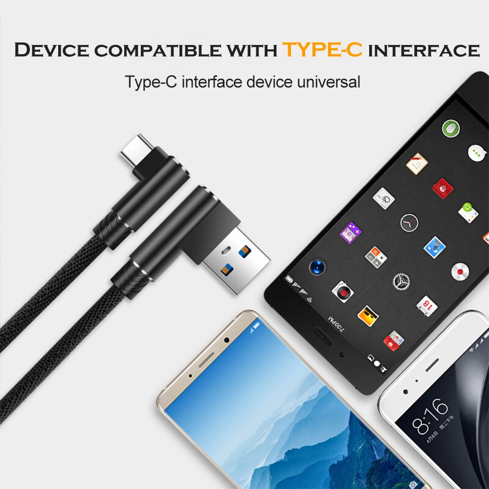 Кабель для зарядки и передачи данных, USB Type-C, 90 градусов, для Samsung S9, S10, S8, 2A, Xiaomi Mi 9, Huawei P30, P20, Mate20