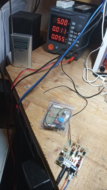 Работает, но как-то странно. Ширина модулируемой полосы напрямую зависит от напряжения, причем чем меньше, тем шире. Что бы всё заработало, каждую деталь нужно проверять. У меня все конденсаторы больше 1nF, не соотвествовали маркировке. Например вместо 100nF - 50.