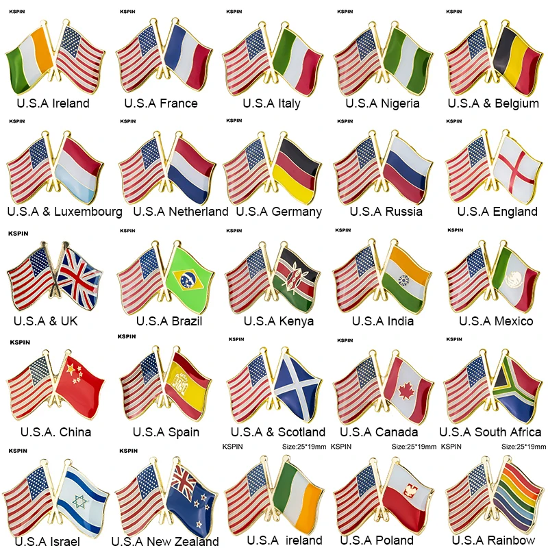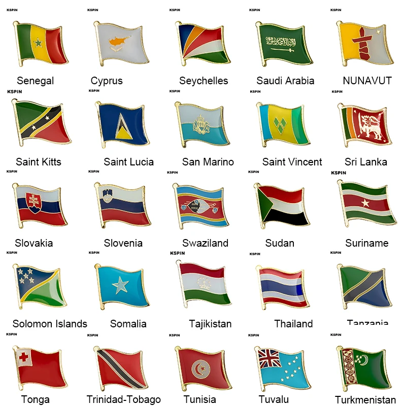 NameCountry Flag Lapel Pin Badge Brooch Icons