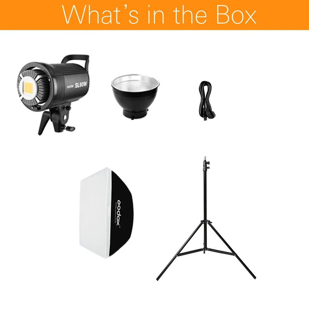 Godox SL-60W 5600K Светодиодная лампа для видеосъемки белая версия светильник непрерывного освещения + 60x90 см Bowens софтбокс + светильник см осветительная стойка