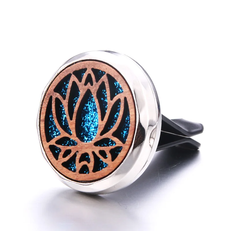 Деревянный освежитель воздуха для автомобиля Lotus, съемный автомобильный парфюный диффузор, автомобильный освежитель воздуха, ароматерапия, медальон для эфирных масел, подвеска 316L