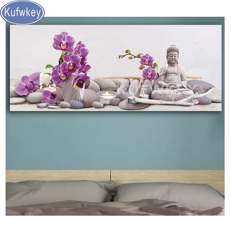 Алмазная мозаика 5d "сделай сам" с изображением Будды и орхидей