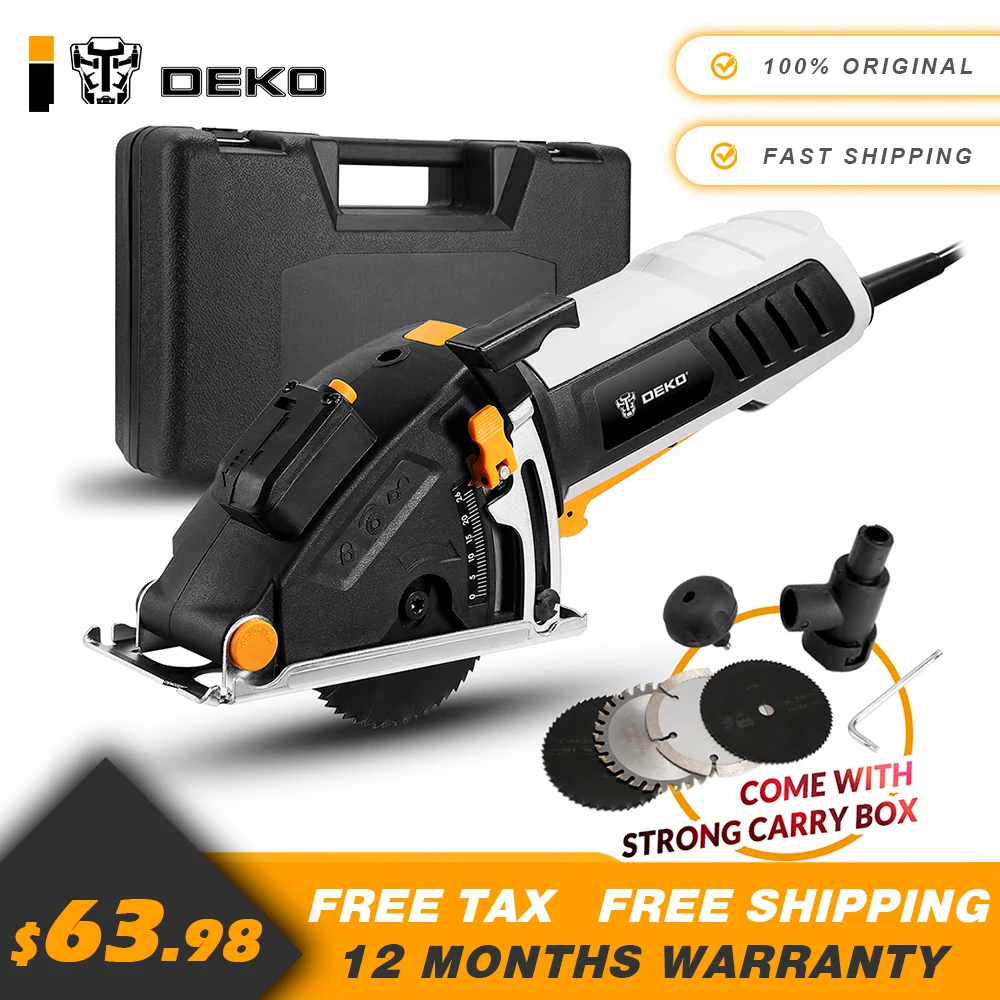 Мини-циркулярная пила DEKO DKMS85Q1 с лазером, 4 лезвия, шестигранный ключ, вспомогательная ручка, коробка BMC, электрическая пила