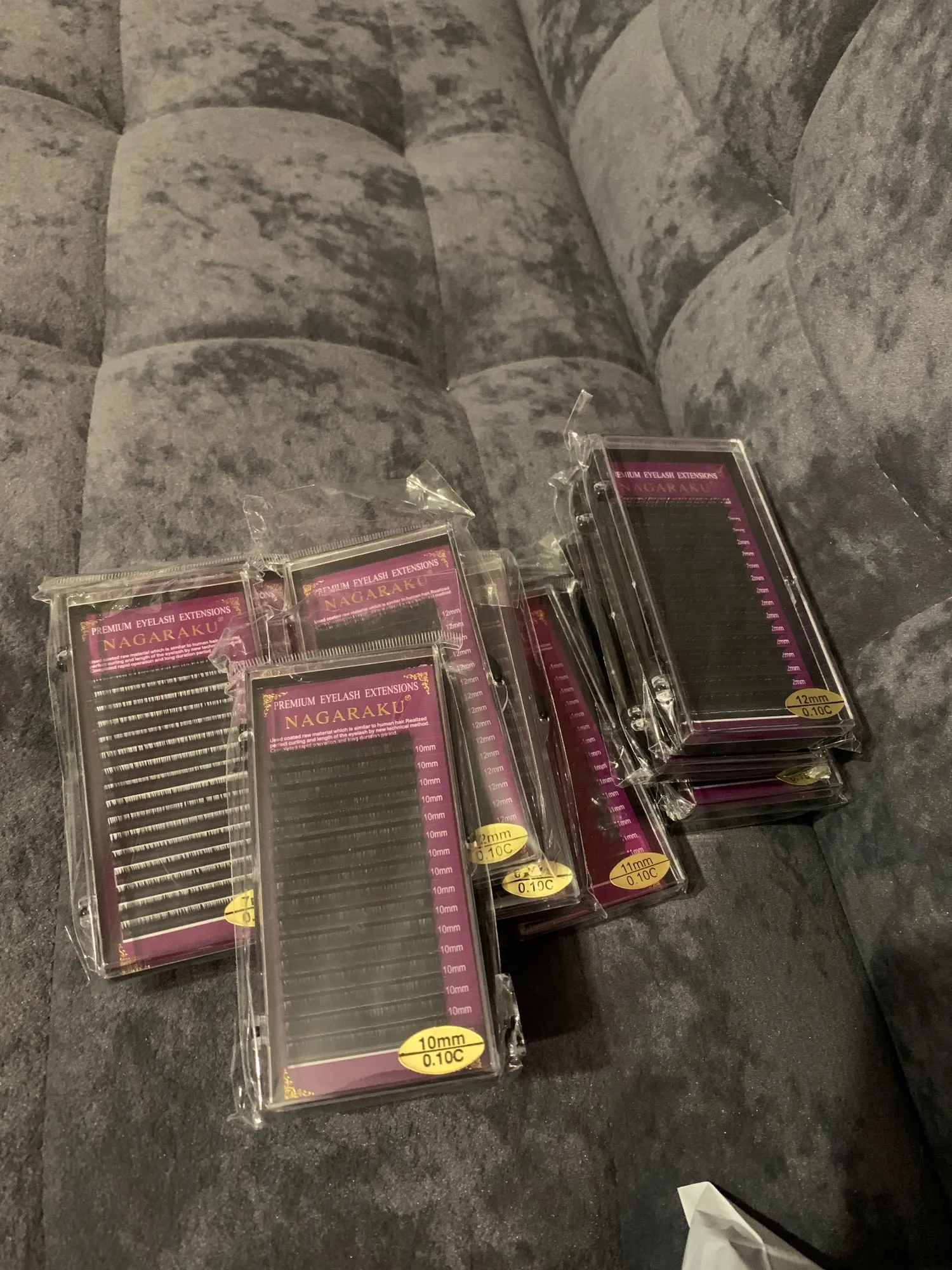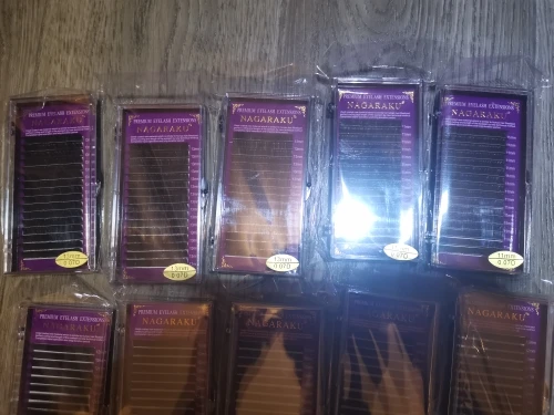 все пришло очень быстро ,целые коробки. ресницы беру не первый раз,в работе и качество на высоте. брака нет. толщина чуть меньше.тут указана 0.10 а на самом деле это 0.07. берите чуть толще. изгиб С соответвует. лента личная отличная. в носке тоже отличные.