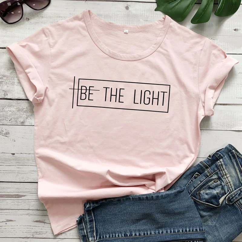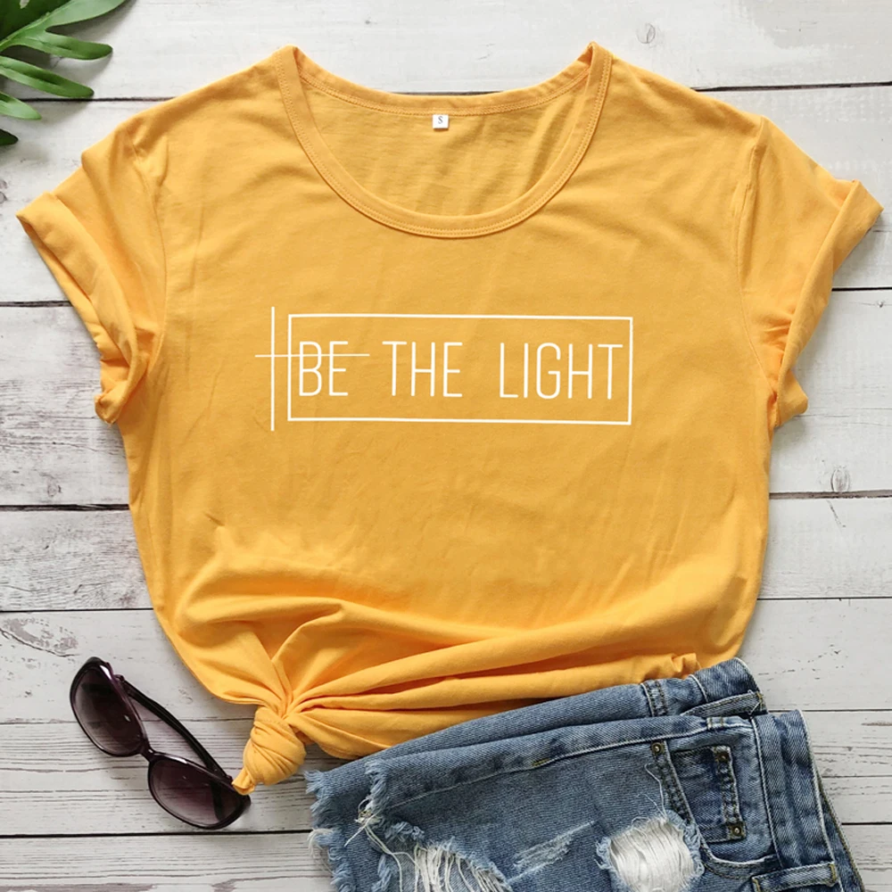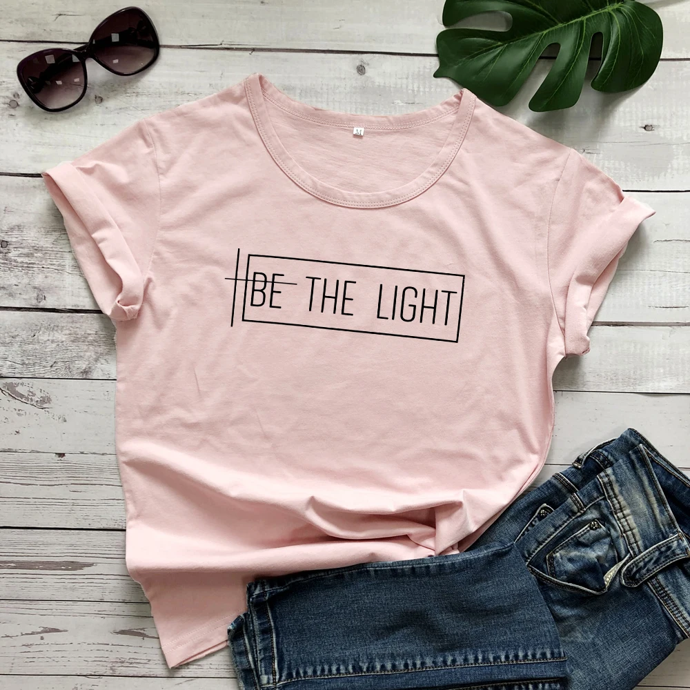 Женские футболки Be The светильник, футболки для женщин, футболки для церкви и церкви, топы, новая модная религиозная вдохновляющая футболка с изображением Иисуса Христа Вера