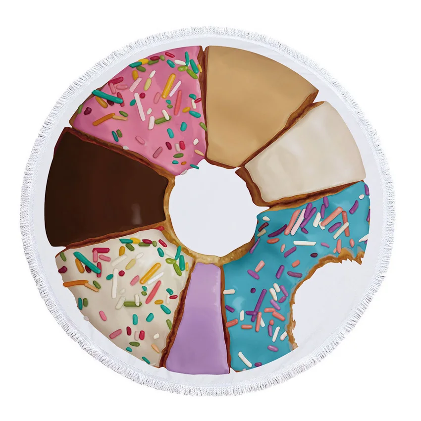Летнее круглое пляжное полотенце с цветным пончиком, 150 см, мягкий рюкзак на шнурке, банное полотенце для душа, коврик для йоги, одеяло с кисточками