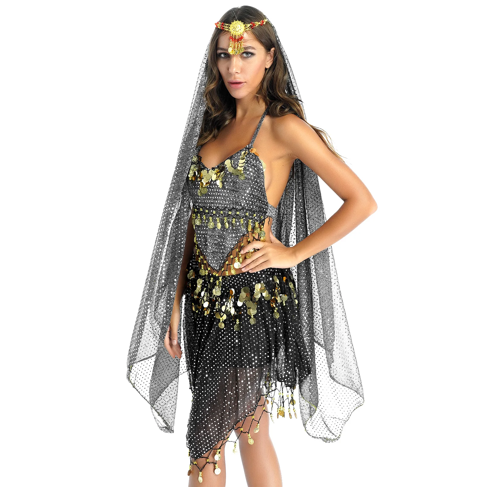 Женский костюм для танца живота TiaoBug, костюм для Хэллоуина, карнавала, сцены, выступления в Египте, болливудское платье для индийских танцев, шифоновое сари