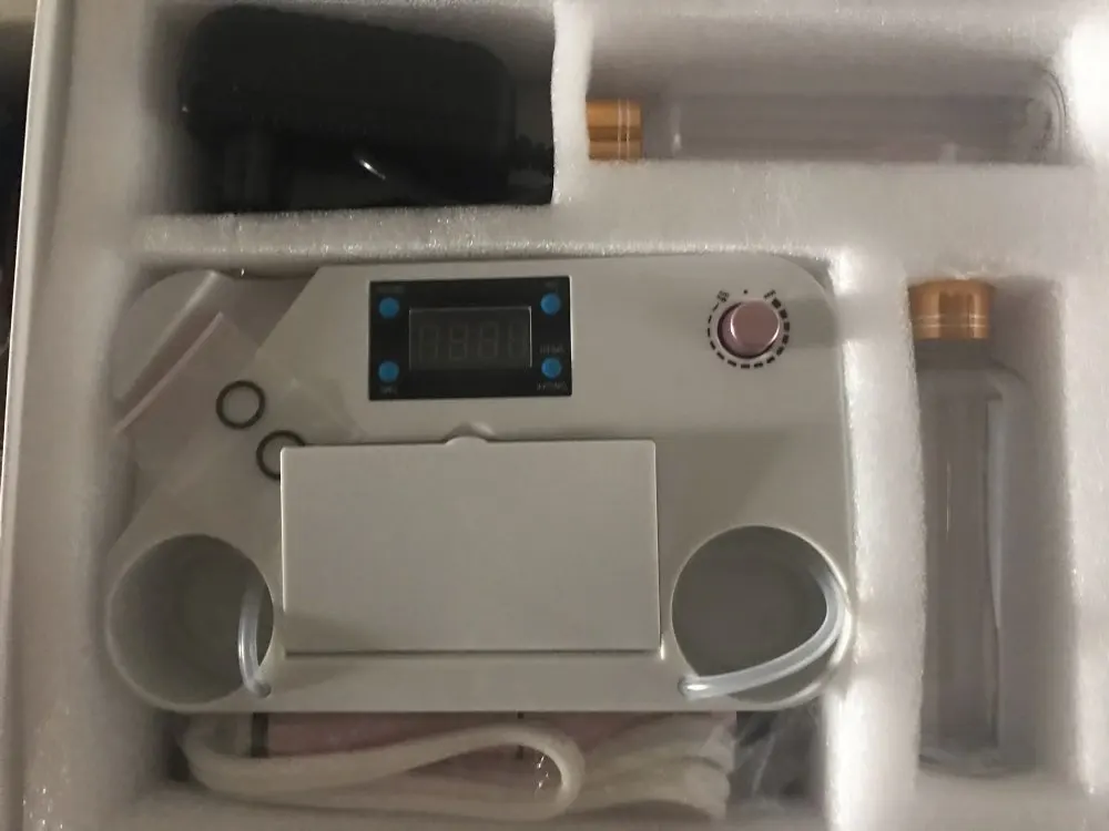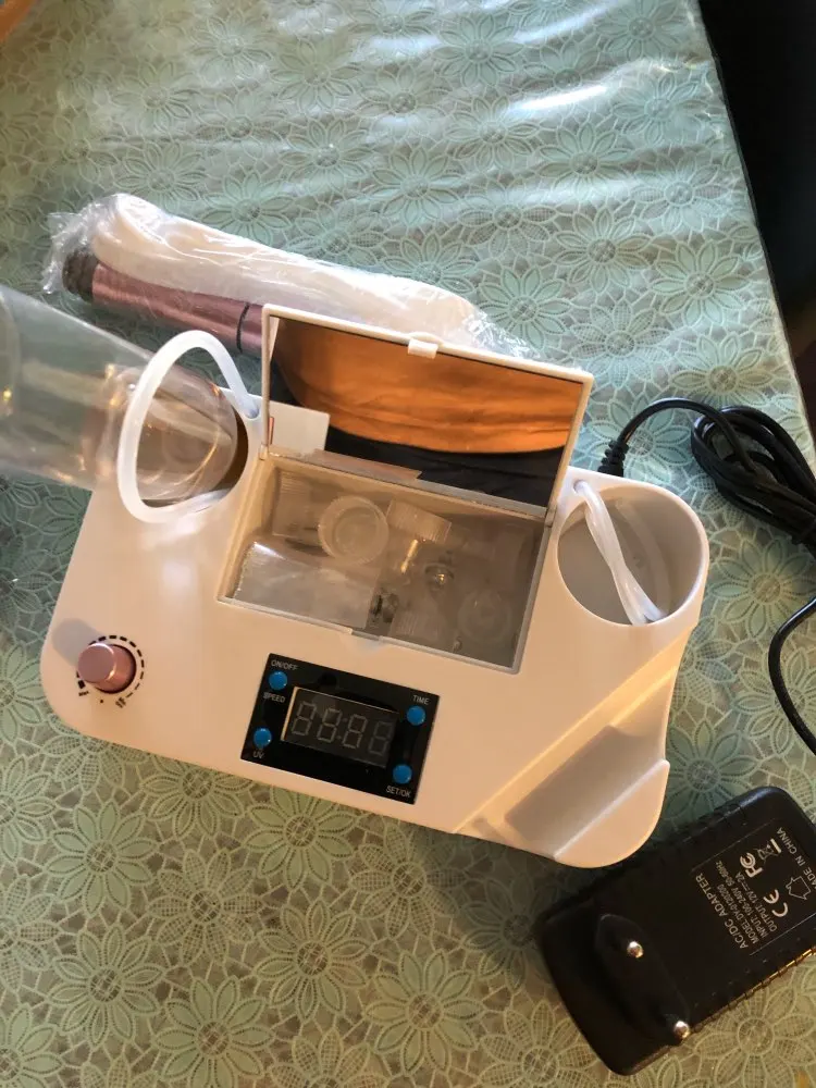 Слишком маленький. Не достаточно вес, поэтому он нестабильный... Кабель сосательной головки слишком короткий, поэтому вы не можете делать много движений. Бутылки для воды слишком маленькие, в течение 4 минут вы должны менять их снова и снова. Поток воды очень невозможен, иногда вода не поступает, иногда слишком много... Жаль, потому что это может быть супер хороший продукт, но он невозможен... Головки очень хорошие, алмаз очень хороший...