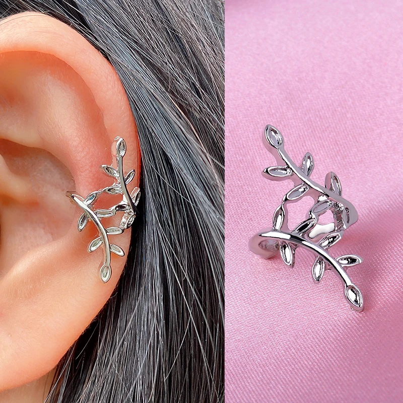 Женские серьги-клипсы с золотыми листьями, элегантные серьги-клипсы без отверстий для альпинизма, стразы, пирсинга хрящей, 1 шт.