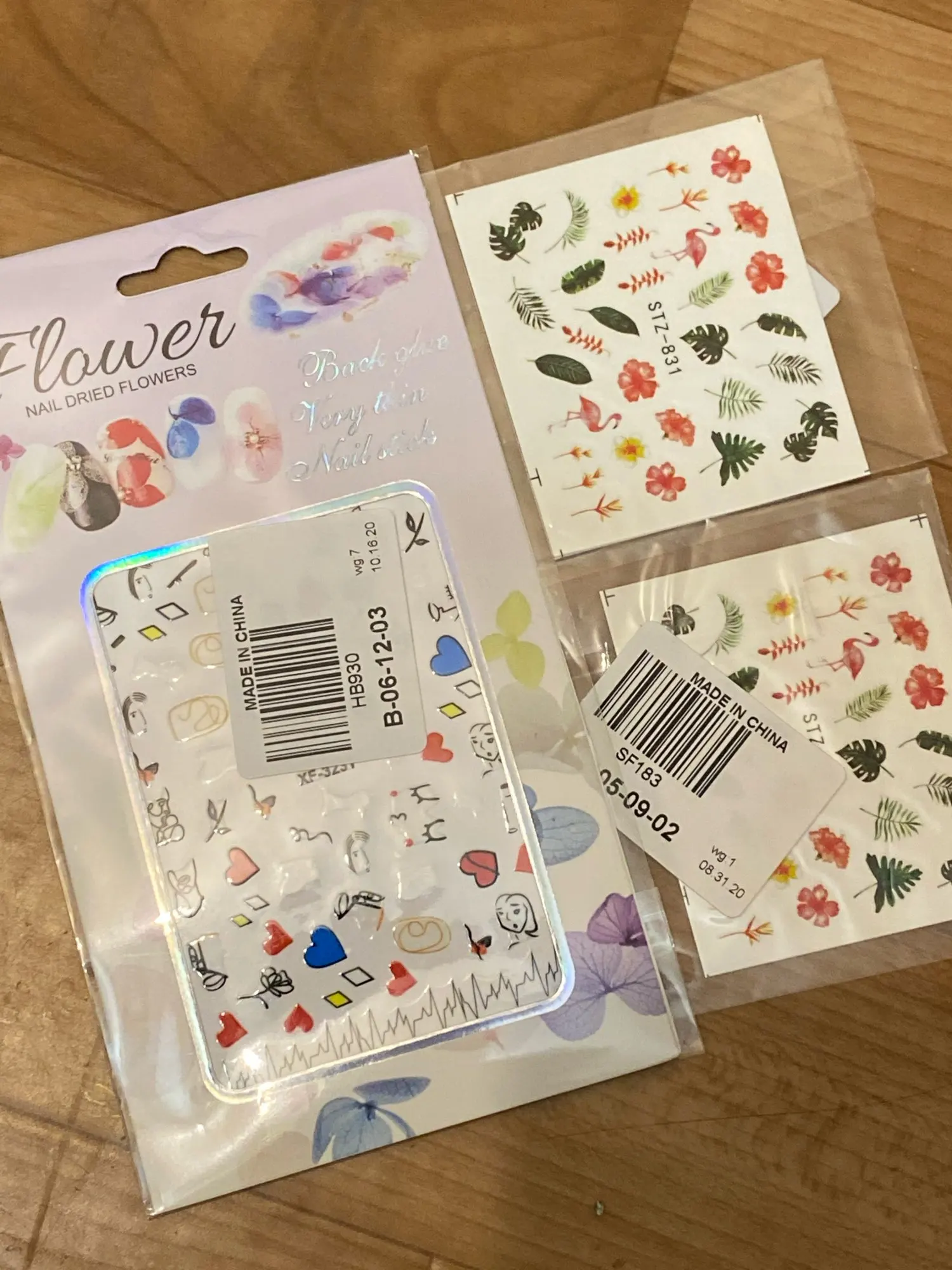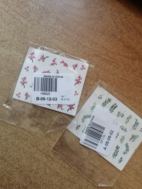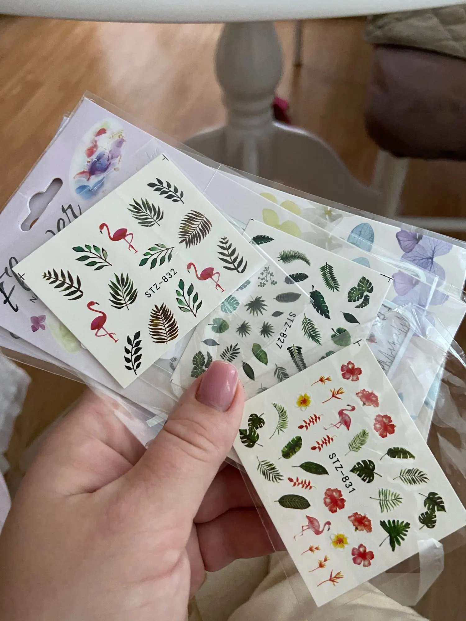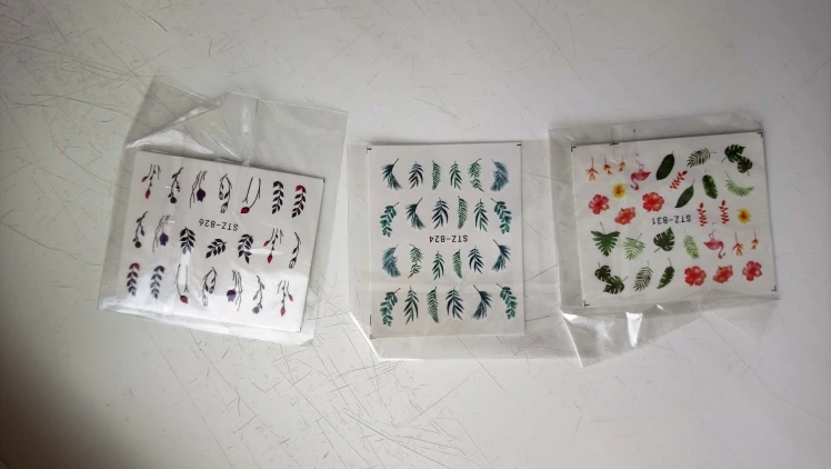 наклейки небольшие, до Москвы доехали очень быстро, доставка заняла недели 3 максимум, сами наклейки на белой подложке, не на прозрачной основе. если клеить то только на светлый маникюр, желательно белый. УПАКОВАНО ОЧЕНЬ КАЧЕСТВЕННО, ничего не порвалось и не помялось, у меня оказалась тройная запечатанная упаковка.