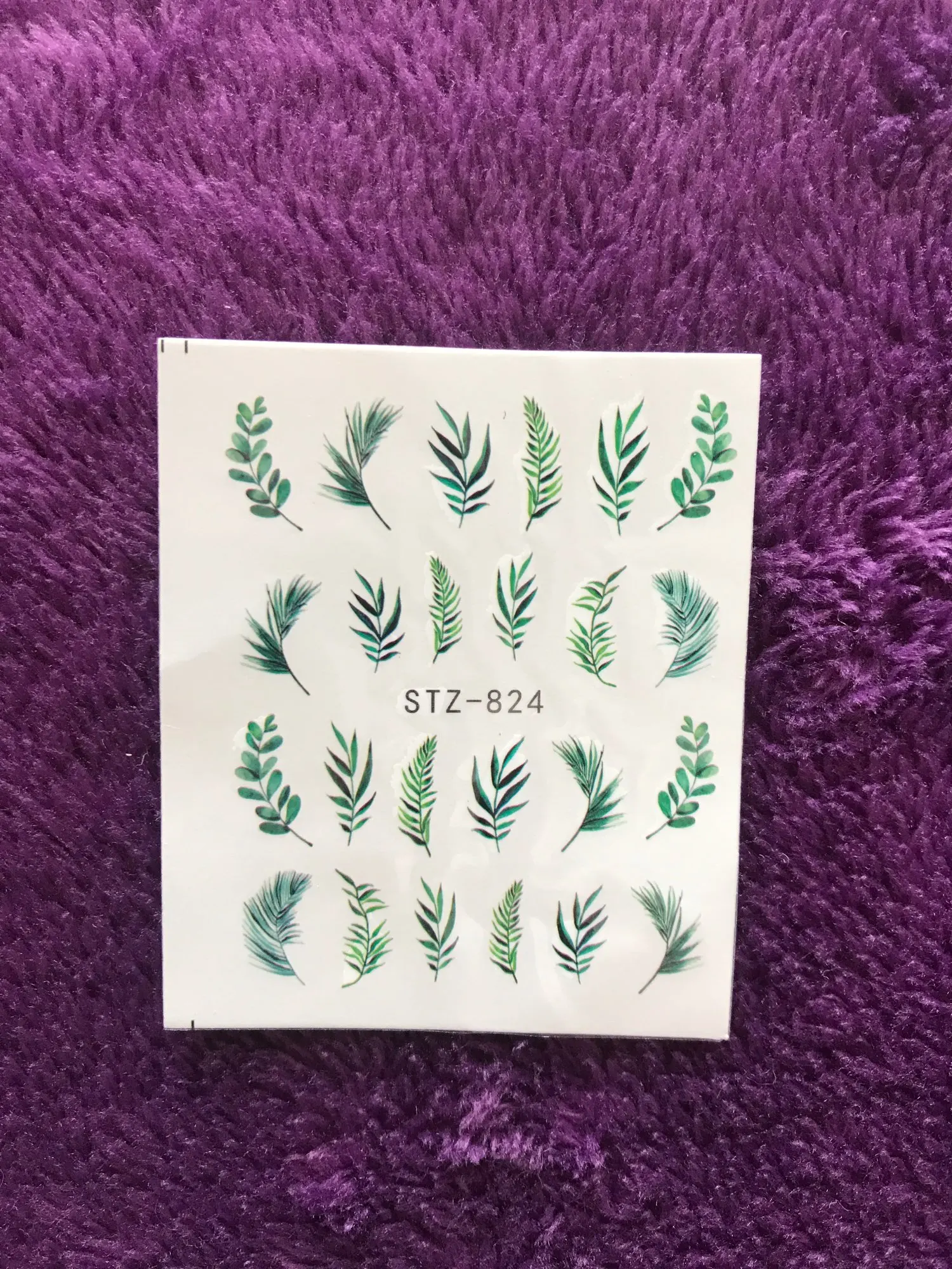 Переводная картинка для ногтей, 1 шт., с цветами, листьями, деревом, зеленая, простая, летняя, самодельная, слайдер для маникюра, нейл-арта, маникюр с использованием водяных знаков, Декор