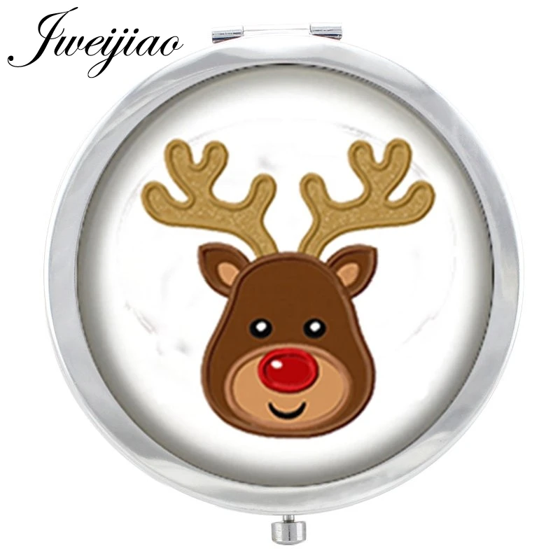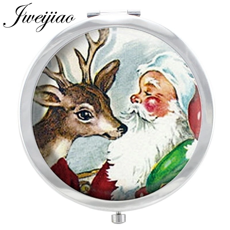 Круглое металлическое компактное ручное зеркало JWEIJIAO с изображением Санта-Клауса, милого оленя, туалетное зеркало, Рождественский подарок C27