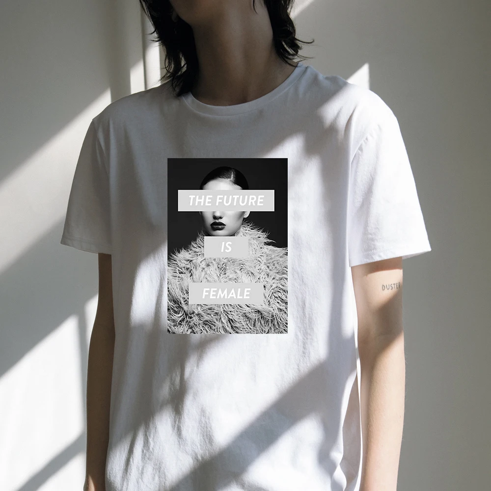 Феминистская футболка 100% хлопковые толстовки с капюшоном в будущее Женская классная Одежда для девочек белого цвета с принтом Tops Tees, Высококачественная брендовая одежда для девочек; Корейский женские футболки