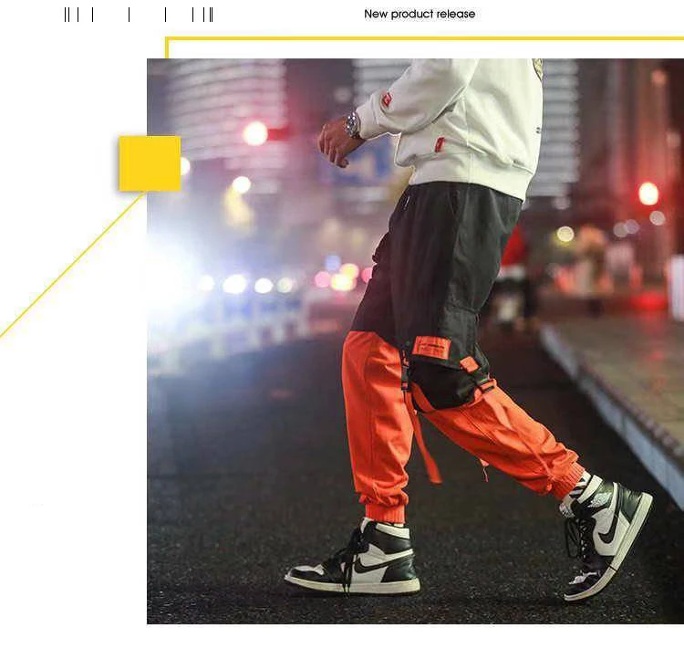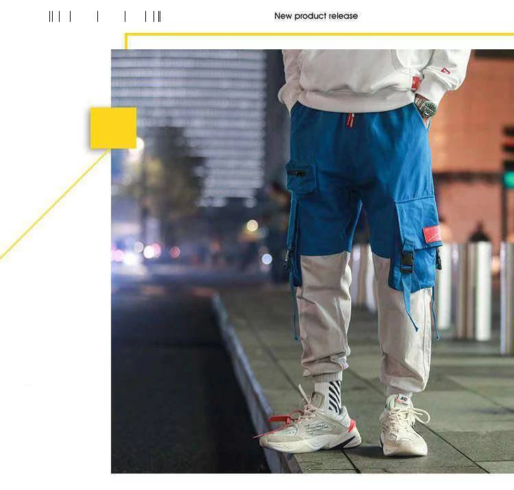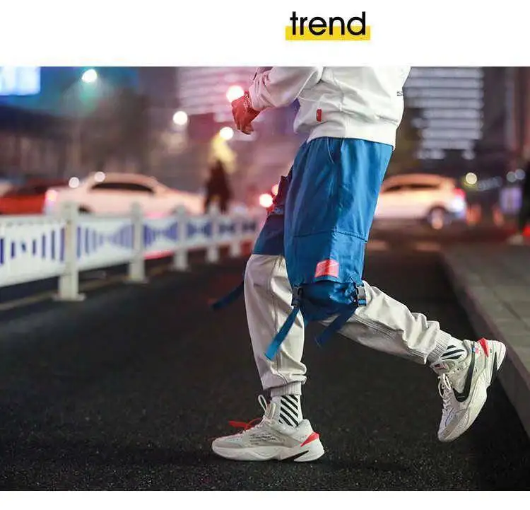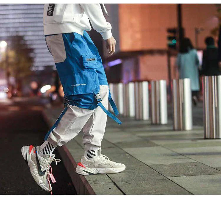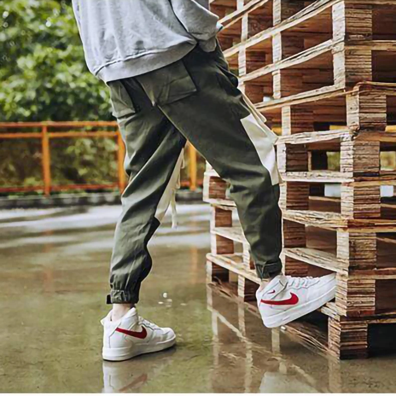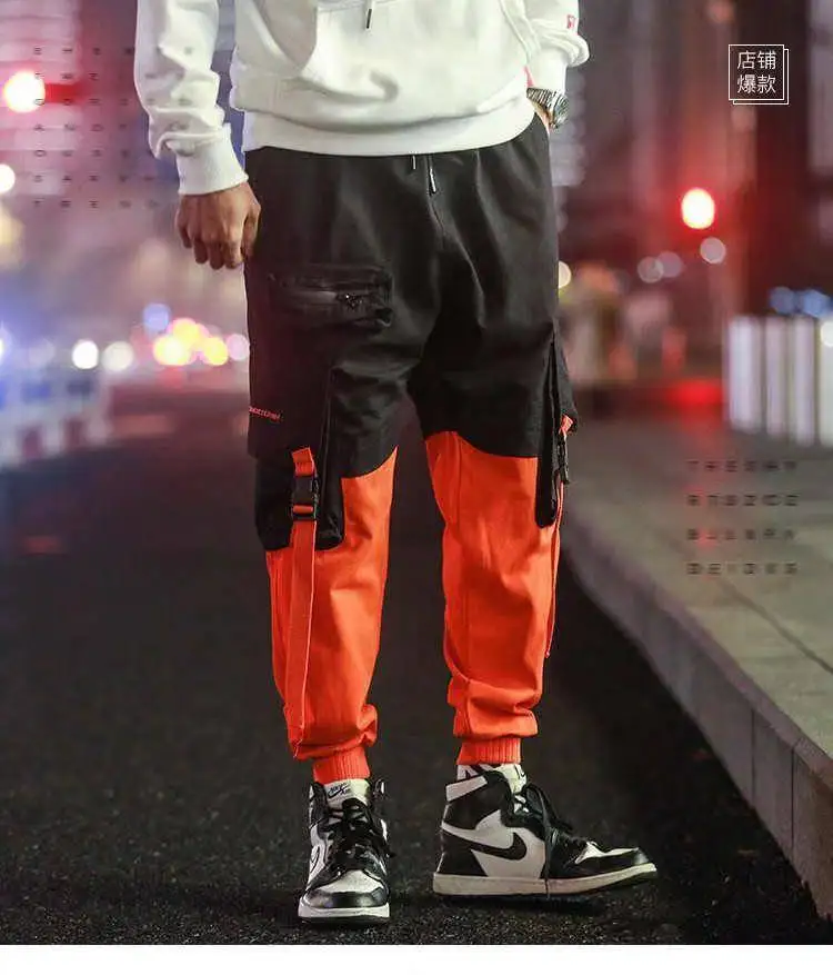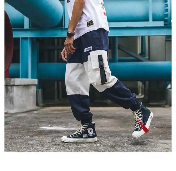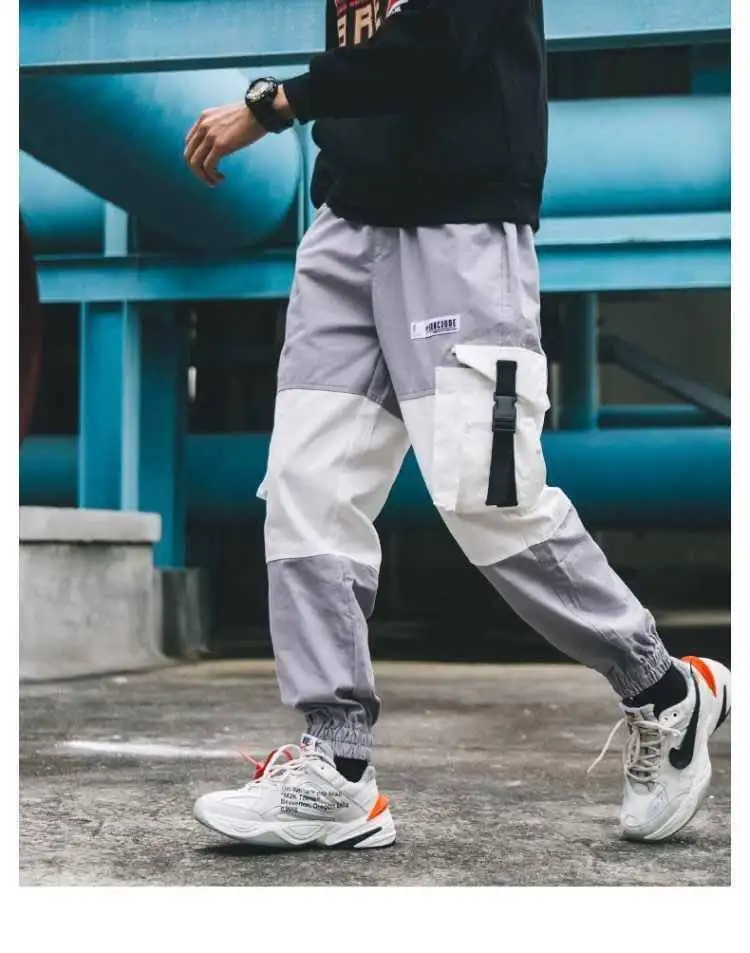 Брюки-карго мужские свободные, уличная одежда в стиле хип-хоп, джоггеры, корейские брюки-султанки в стиле пэчворк с карманами, брюки до щиколотки, Techwear