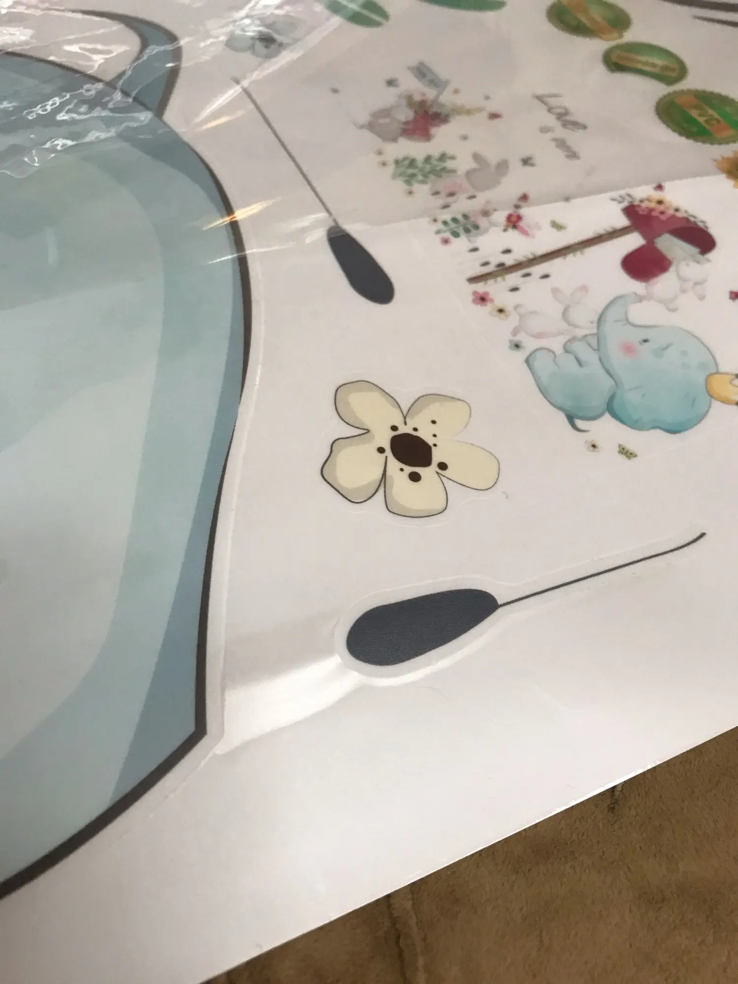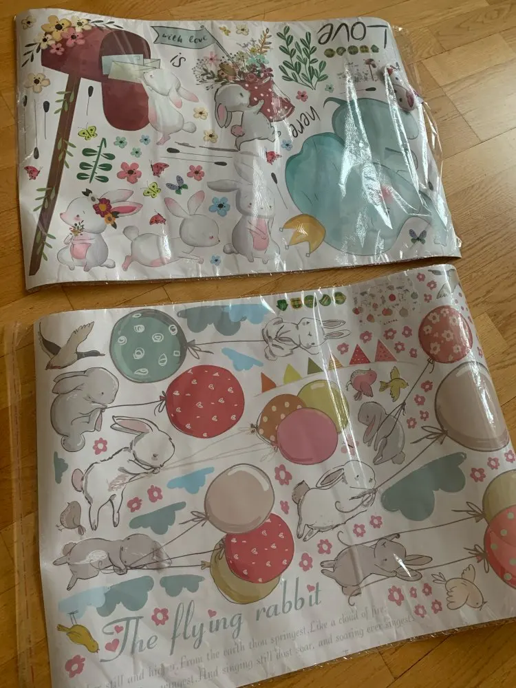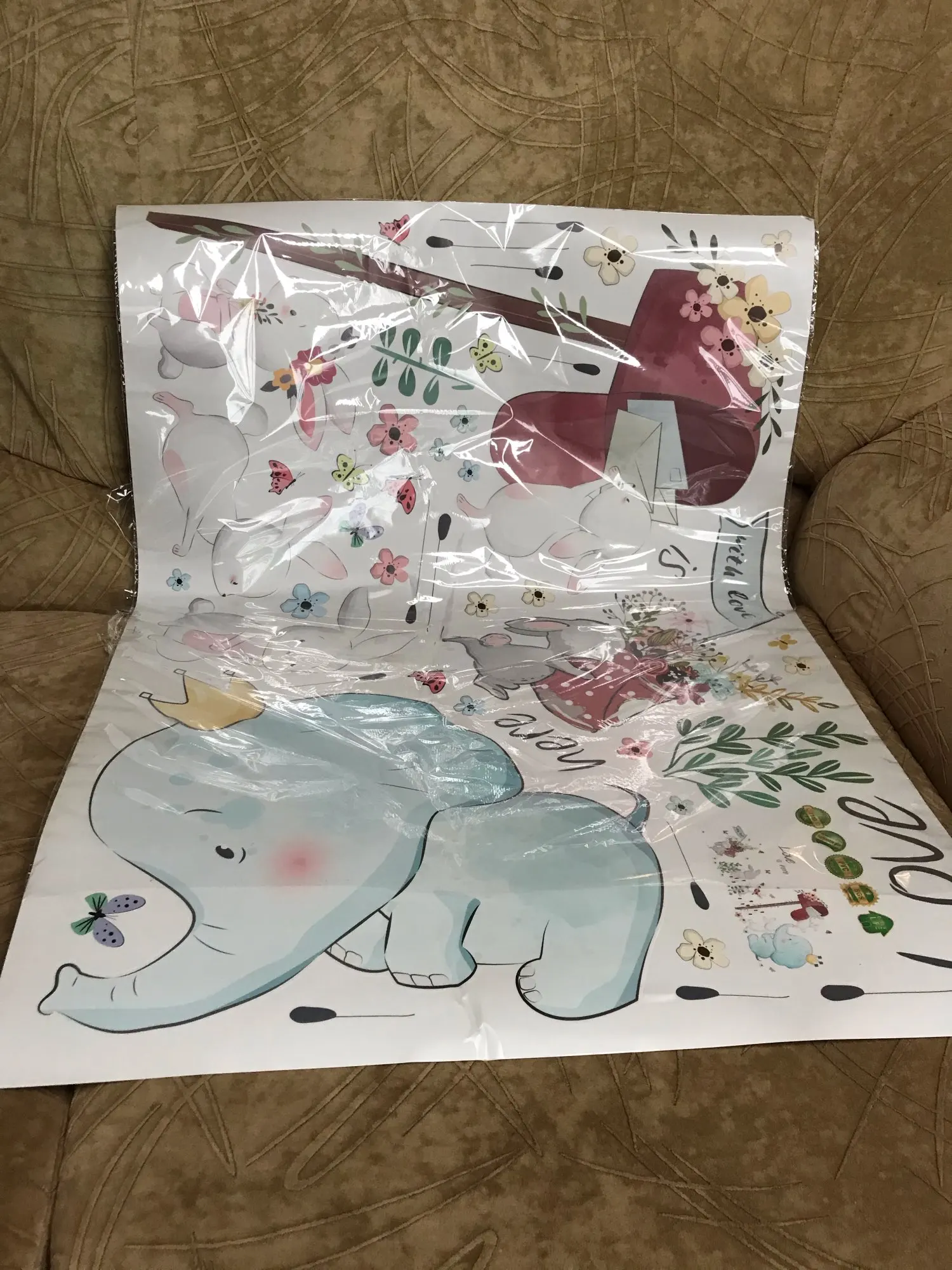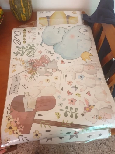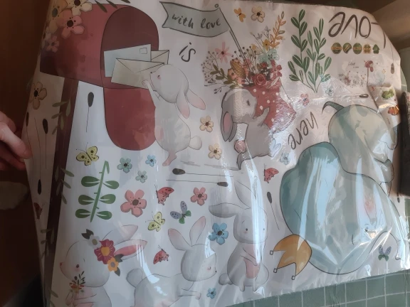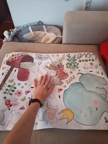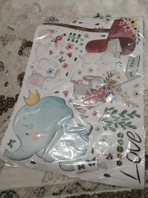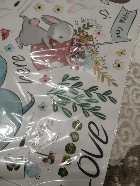 Всё отлично! После получения посылки распаковали товар и положили выравниваться. Когда приклеим - дополню отзыв. В целом: рисунки яркие, на светлых однотонных обоях будут отлично смотреться! Все цвета на рисунках очень приятные. Есть наклейка в миниатюре, где показано, как должна выглядеть готовая композиция. А то в отзывах я видела, что некоторые элементы приклеены вверх ногами))) если какая-то часть будет плохо клеится мы будем использовать двухсторонний скотч и проблема будет решена. Рекомендую товар и рекомендую продавца! Отзыв дополню где-то через месяц-полтора.